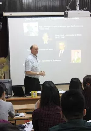 Chương trình tiên tiến là chương trình đào tạo nhằm xây dựng và phát triển một số ngành đào tạo, khoa, trường ĐH mạnh, đạt chuẩn khu vực và đẳng cấp quốc tế. Chương trình được xây dựng trên cơ sở chương trình đào tạo của trường đối tác, là một ĐH danh tiếng được xếp hạng trong số 200 của thế giới; đa số giảng viên là các giáo sư của trường đối tác. GS. TS. Jorge Alberto Ramirez trong giờ giảng môn Thủy văn cơ sở cho lớp 53NKN của Chương trình tiên tiến ngành Kỹ thuật Tài...