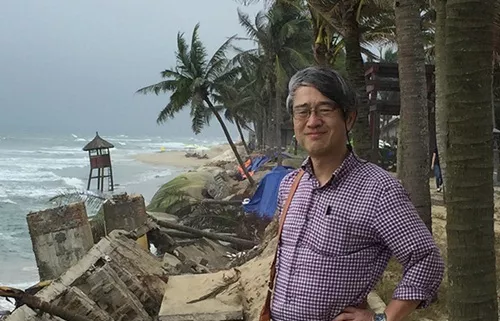 GS. TS Hitoshi Tanak tại bờ biển Cửa Đại – Hội An (Quảng Nam). Ảnh: Thời Đại Trong những năm gần đây, thông qua các cuộc Hội thảo khoa học do Việt Nam tổ chức, GS. TS Hitoshi Tanak- Phó Chủ tịch Hội Xây dựng dân dụng Nhật Bản đã có những nghiên cứu quan trọng về cơ chế xói lở vùng cửa sông và bờ biển Cửa Đại và đề xuất giải pháp chỉnh trị, đã cung cấp, củng cố thêm nhiều luận chứng khoa học, cắt nghĩa hiện tượng xói lở cục bộ ở bờ biển Cửa Đại...