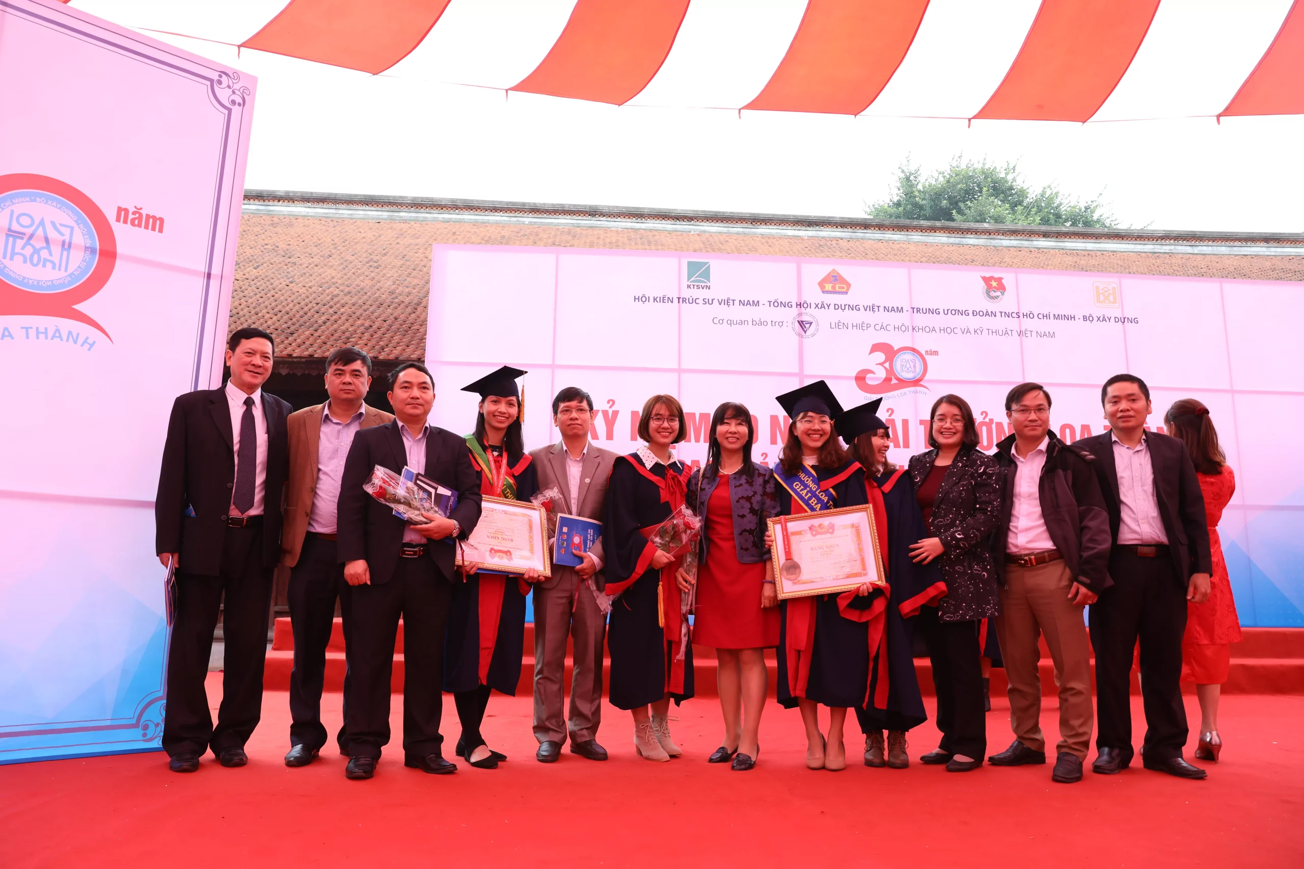 Đại diện Trường Đại học Thủy lợi (thứ 2 từ trái qua) nhận bằng khen của Ban tổ chức vì những đóng góp trong 30 năm phát triển của Giải thưởng Loa Thành Giải thưởng Loa Thành được bắt đầu từ năm 1988, là cuộc thi Đồ án tốt nghiệp xuất sắc của sinh viên các trường đại học xây dựng và kiến trúc do sáng kiến của Hội Xây dựng Việt Nam (nay là Tổng hội Xây dựng Việt Nam) đã mở đầu cho một chặng đường dài 30 năm. Trong 30 năm hình thành và phát triển, số...