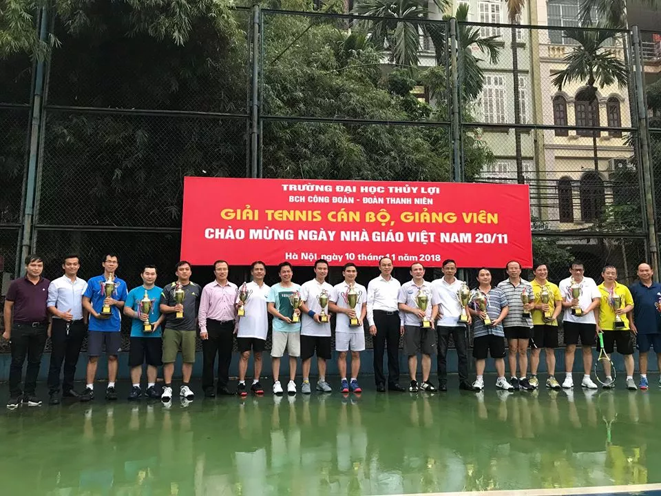 Hàng chục cán bộ, giảng viên đã tham gia thi đấu trong giải đấu được tổ chức thường niên nhân dịp chào mừng ngày Nhà giáo Việt Nam 20 tháng 11. Đây được coi là sân chơi thể thao bổ ích dành cho các cán bộ, giảng viên đang công tác tại Trường Đại học Thủy lợi. Ban tổ chức trao giải cho các vận động viên Giải đấu do BCH Công đoàn, Đoàn thanh niên phối hợp tổ chức, tất cả các trận đấu được tổ chức trên sân tennis của trường. GS.TS Trịnh Minh Thụ, Hiệu trưởng trao...