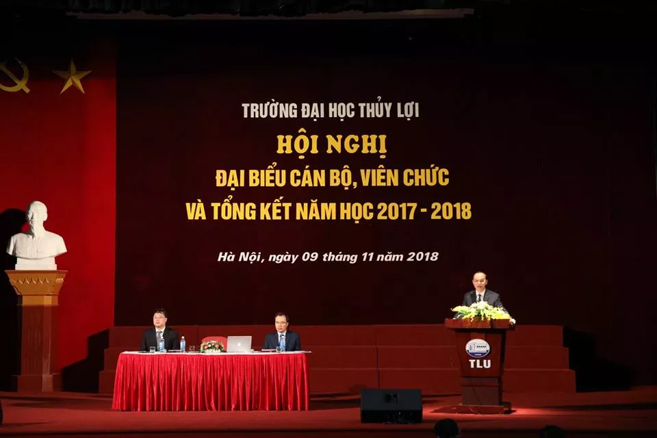Sáng ngày 9/11, tại Hội trường T45, Trường Đại học Thủy lợi tổ chức hội nghị đại biểu cán bộ, viên chức và tổng kết năm học 2017 – 2018. Hội nghị có sự tham gia của Đảng ủy, Ban Giám hiệu cùng 225 đại biểu là cán bộ, giảng viên thuộc các Phòng, Khoa, Trung tâm, Viện trong toàn trường. Dưới sự điều hành của đoàn Chủ tịch gồm: GS. TS Trịnh Minh Thụ – Hiệu trưởng; PGS. TS Nguyễn Cảnh Thái – Phó hiệu trưởng và PGS. TS Nguyễn Ngọc Thắng – Chủ tịch Công đoàn trường, hội...