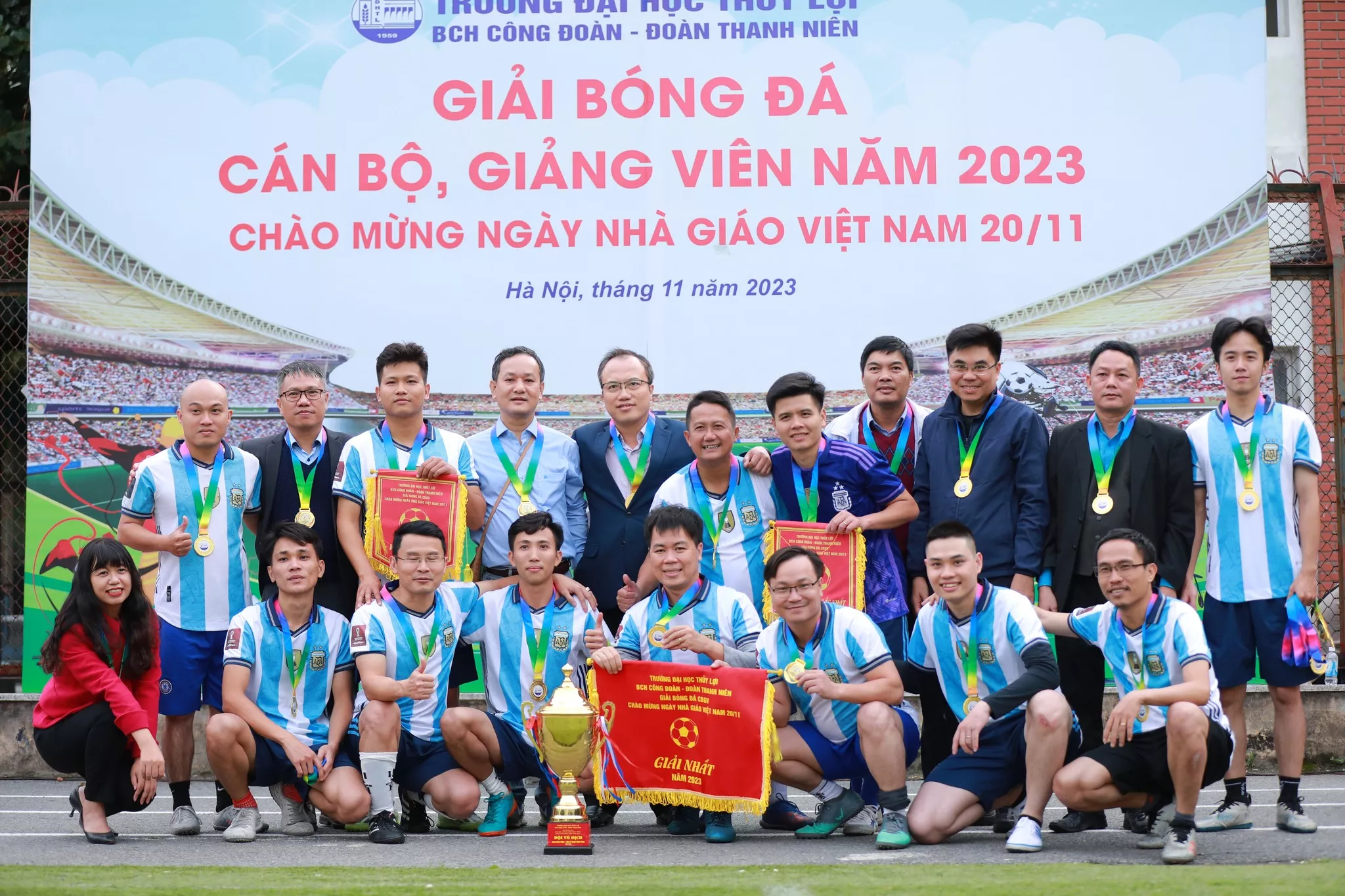 Giải bóng đá Cán bộ, Giảng viên thường niên năm 2023 có tổng cộng 7 đội bóng tham gia, được chia làm 2 bảng A và B, thi đấu theo hình thức vòng tròn giữa các đội trong cùng một bảng. Các trận đấu vòng loại trực tiếp diễn ra rất kịch tính và hấp dẫn Sau vòng bảng, 4 đội dẫn đầu mỗi bảng đã bước vào vòng đấu loại trực tiếp gồm Đội bóng liên quân Phòng – Khoa – Trung tâm – Thư viện – VP Đoàn, đội liên quân Khoa Công trình, Viện kỹ thuật công...