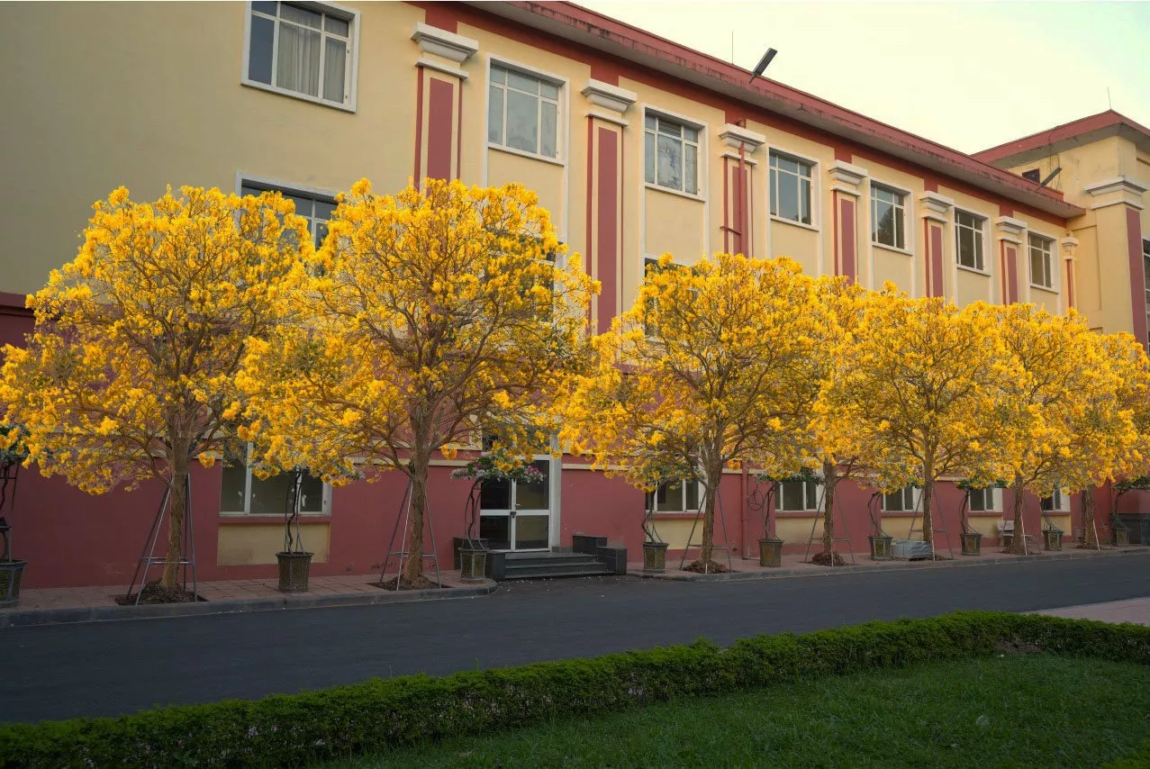 Hàng cây hiện tại trước cửa Hội trường T45 Hy vọng mùa xuân năm tới, với rực rỡ sắc vàng hoa Phong Linh sẽ mang đến diện mạo mới cho ngôi Trường Đại học Thủy lợi. Hoa Phong Linh được ví như “hoa cúc vàng của xứ Hàn”. Đến với Thủy lợi mùa này năm sau, bạn sẽ được chiêm ngưỡng những cánh hoa vàng khoe sắc trên nền tường hồng và nền xanh của cây cổ thụ trong trường. Hy vọng 1 năm nữa trước cửa Hội trường T45 sẽ rực rỡ sắc vàng (Ảnh Photoshop) Đây là món...