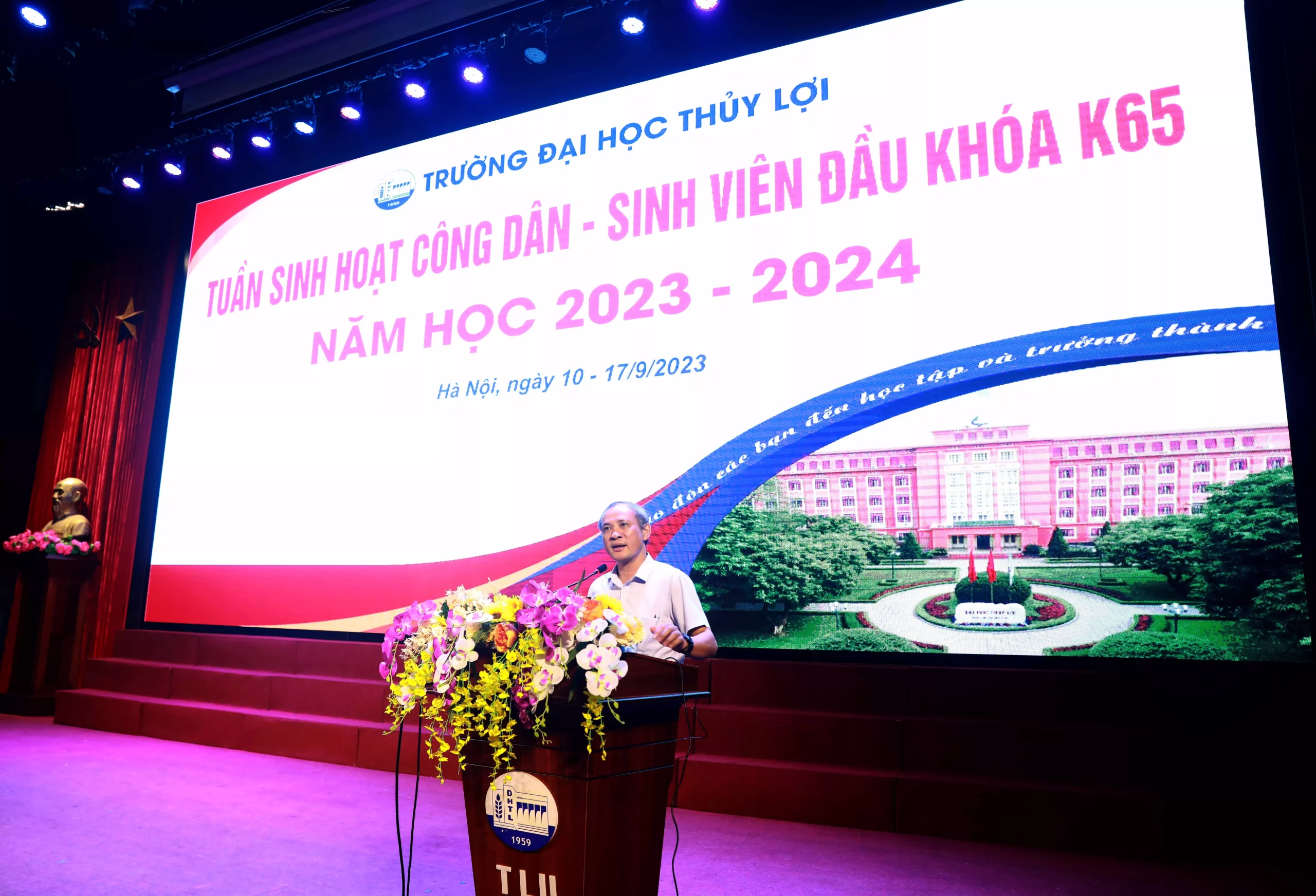 Thực hiện hướng dẫn của Bộ Giáo dục và Đào tạo về việc tổ chức “Tuần sinh hoạt công dân – Học sinh, sinh viên” trong các trường Đại học, Cao đẳng sư phạm năm học 2023 – 2024, hôm nay (11/9), tại Trường Đại học Thủy lợi diễn ra buổi Khai mạc tuần sinh hoạt công dân – sinh viên đầu khóa với sự tham dự của GS.TS. Nguyễn Trung Việt – Phó Hiệu trưởng Nhà trường; đại diện các Phòng/ Khoa trong trường và hàng ngàn tân sinh viên K64. Các tiết mục văn nghệ mở màn do chính sinh viên Nhà...