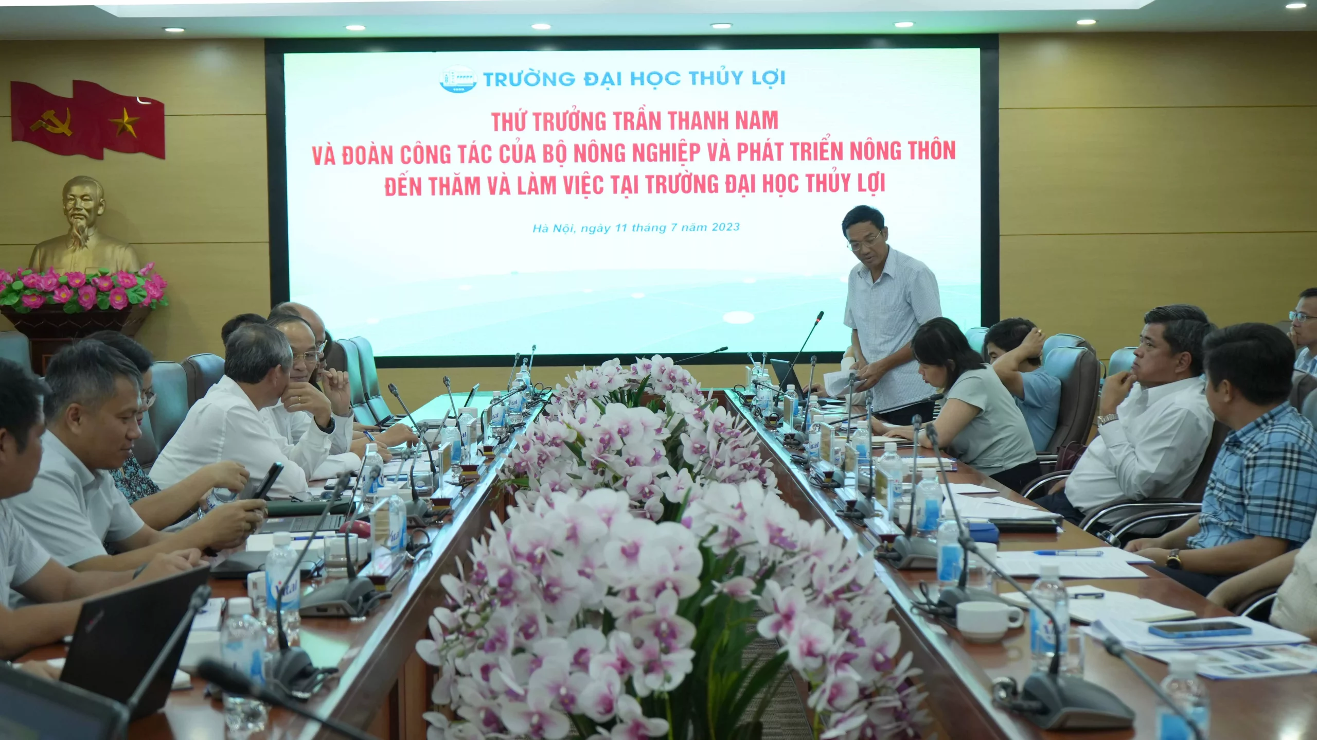 Chiều 11/7, Thứ trưởng Bộ Nông nghiệp và PTNT Trần Thanh Nam cùng đại diện lãnh đạo các Vụ, Cục, Văn phòng của Bộ đã có buổi làm việc với Trường Đại học Thủy lợi về định hướng phát triển và tăng trưởng xanh trong thời gian tới. Đón tiếp đoàn công tác, Trường Đại học Thủy lợi có PGS.TS Nguyễn Hữu Huế – Bí thư Đảng ủy – Chủ tịch Hội đồng Trường; GS.TS Trịnh Minh Thụ – Hiệu trưởng; GS.TS Nguyễn Trung Việt – Phó Hiệu trưởng cùng đại diện các Phòng, Khoa trong Nhà trường. Tại...