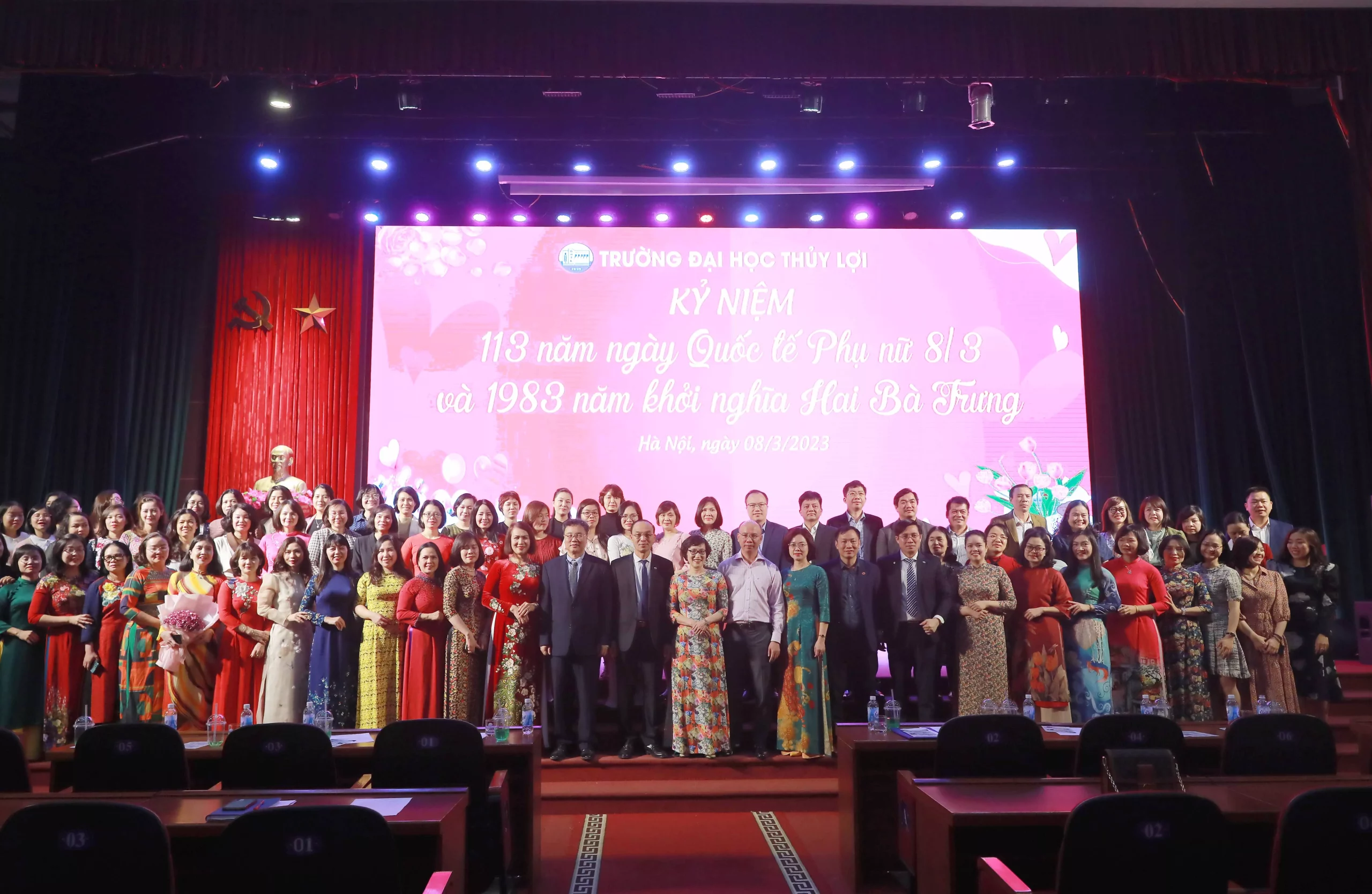 Sáng nay 8/3, tại hội trường T45, Trường Đại học Thủy lợi long trọng tổ chức lễ kỷ niệm 113 năm ngày Quốc tế Phụ nữ 8/3 và 1983 năm khởi nghĩa Hai Bà Trưng. Tham dự buổi lễ có PGS.TS Nguyễn Hữu Huế – Bí thư Đảng Ủy, Chủ tịch Hội đồng trường; GS.TS Trịnh Minh Thụ – Hiệu trưởng; PGS.TS Nguyễn Cảnh Thái – Phó Hiệu trưởng; GS.TS Nguyễn Trung Việt – Phó Hiệu trưởng; Công đoàn, Đoàn thanh niên cùng đại diện các Phòng, Khoa, Ban, Trung Tâm , Ban Nữ công, Ban Nữ sinh cùng toàn thể Nữ Cán bộ, giảng...