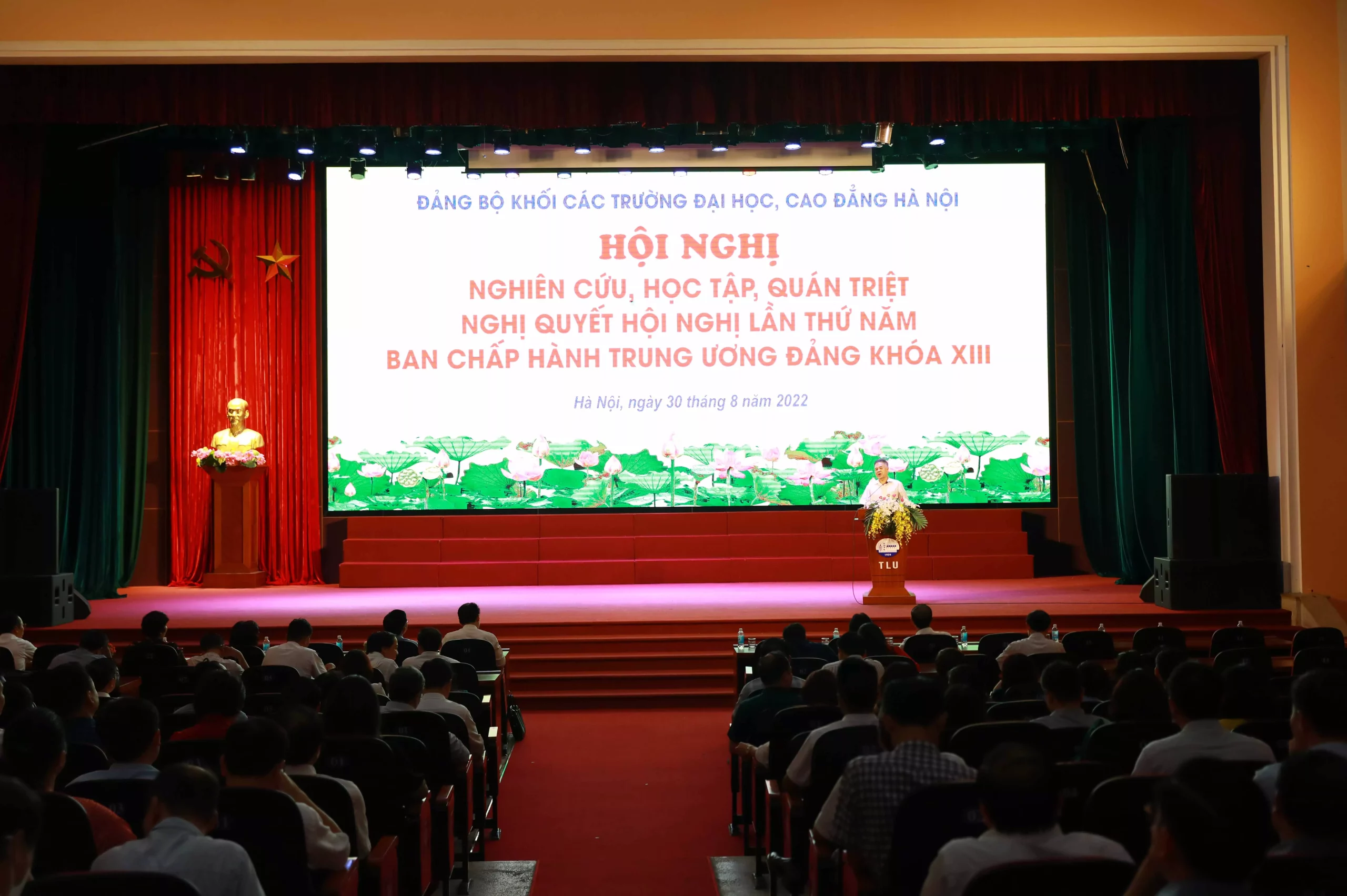 Về dự và truyền đạt nội dung hội nghị có PGS.TS Nguyễn Viết Thông – Nguyên Tổng Thư ký Hội đồng Lý luận Trung ương. Về phía lãnh đạo Đảng ủy khối có đồng chí Nguyễn Thanh Sơn – Thành ủy viên, Bí thư Đảng ủy Khối các trường ĐH, CĐ Hà Nội; đồng chí Nguyễn Tố Quyên – Phó Bí thư thường trực Đảng ủy khối; đồng chí Trương Thị Dung – Phó Bí thư Đảng ủy khối. Về phía Đảng ủy Trường Đại học Thủy lợi – đơn vị phối hợp tổ chức hội nghị, có đồng chí...