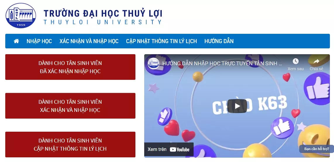 Trường Đại học Thủy lợi hỗ trợ tân sinh viên nhập học trực tuyến