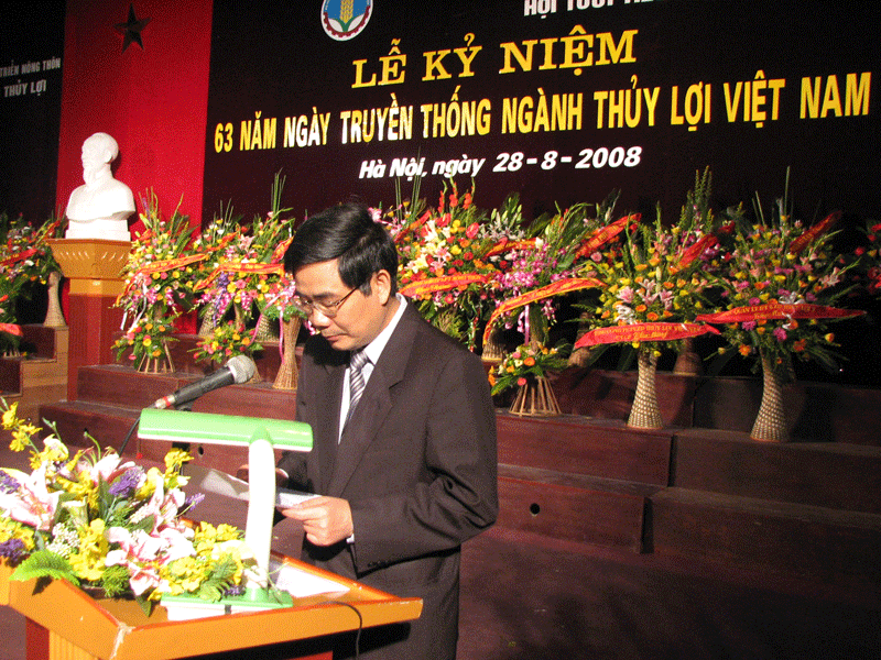 Bộ trưởng Bộ NN&PTNT Cao Đức Phát phát biểu chỉ đạo hội nghị Ðược sự đồng ý của Thủ tướng Chính phủ bằng Quyết định số 1135/QÐ-TTg lấy ngày 28-8 hằng năm là Ngày truyền thống của ngành thủy lợi Việt Nam, ngày 28-8, tại Hà Nội, ngành thủy lợi đã tổ chức lễ kỷ niệm 63 năm thủy lợi Việt Nam. Là một nước đi lên từ nông nghiệp, 63 năm qua, nhiệm vụ và công tác thủy lợi luôn gắn liền với nhiệm vụ của cách mạng Việt Nam qua các thời kỳ, là biện pháp quan trọng hàng...
