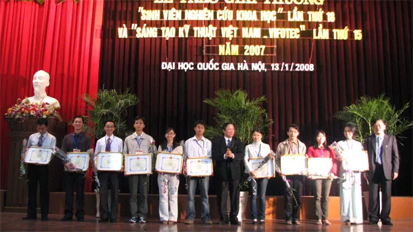 Tám công trình của 11 sinh viên đã nhận một lúc hai giải nhất trong buổi lễ trao giải thưởng “Sinh viên nghiên cứu khoa học” lần thứ 18 và Giải thưởng Sáng tạo kỹ thuật Việt Nam – VIFOTEC lần thứ 15 tổ chức sáng 13/01/2008 tại Hà Nội. 8 giải Nhất “Giải thưởng sáng tạo kỹ thuật Việt Nam – Vifotec”Năm 2007 là năm thứ 18 Bộ GD-ĐT phối hợp với Trung ương Đoàn Thanh niên Cộng sản Hồ Chí Minh tổ chức xét tặng và trao giải thưởng “Sinh viên nghiên cứu khoa học”, cũng là năm...