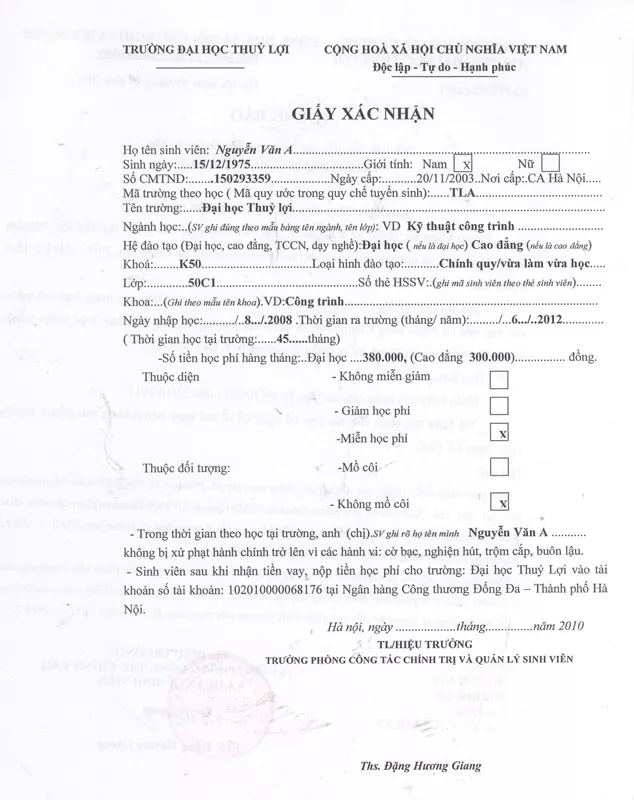 Thông báo về việc cấp giấy xác nhận vay vốn cho sinh viên kỳ 1 năm học 2011 – 2012 lần 2