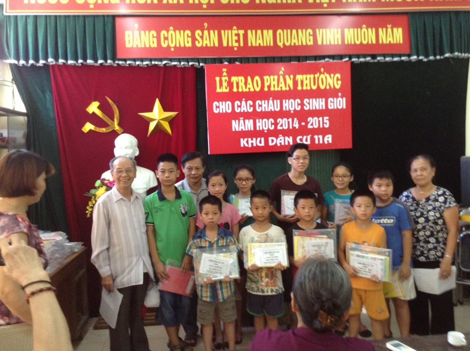 Ngày 29-06-1015, Chi hội khuyến học kết hợp Ban Dân số Trẻ em Gia đình tổ chức phát phần thưởng cho các cháu học sinh học từ cấp 1 đến cấp 3 năm học 2014 – 2015 của khu Dân cư 11A tại Câu lạc bộ hưu trí trường Đại học Thủy lợi.