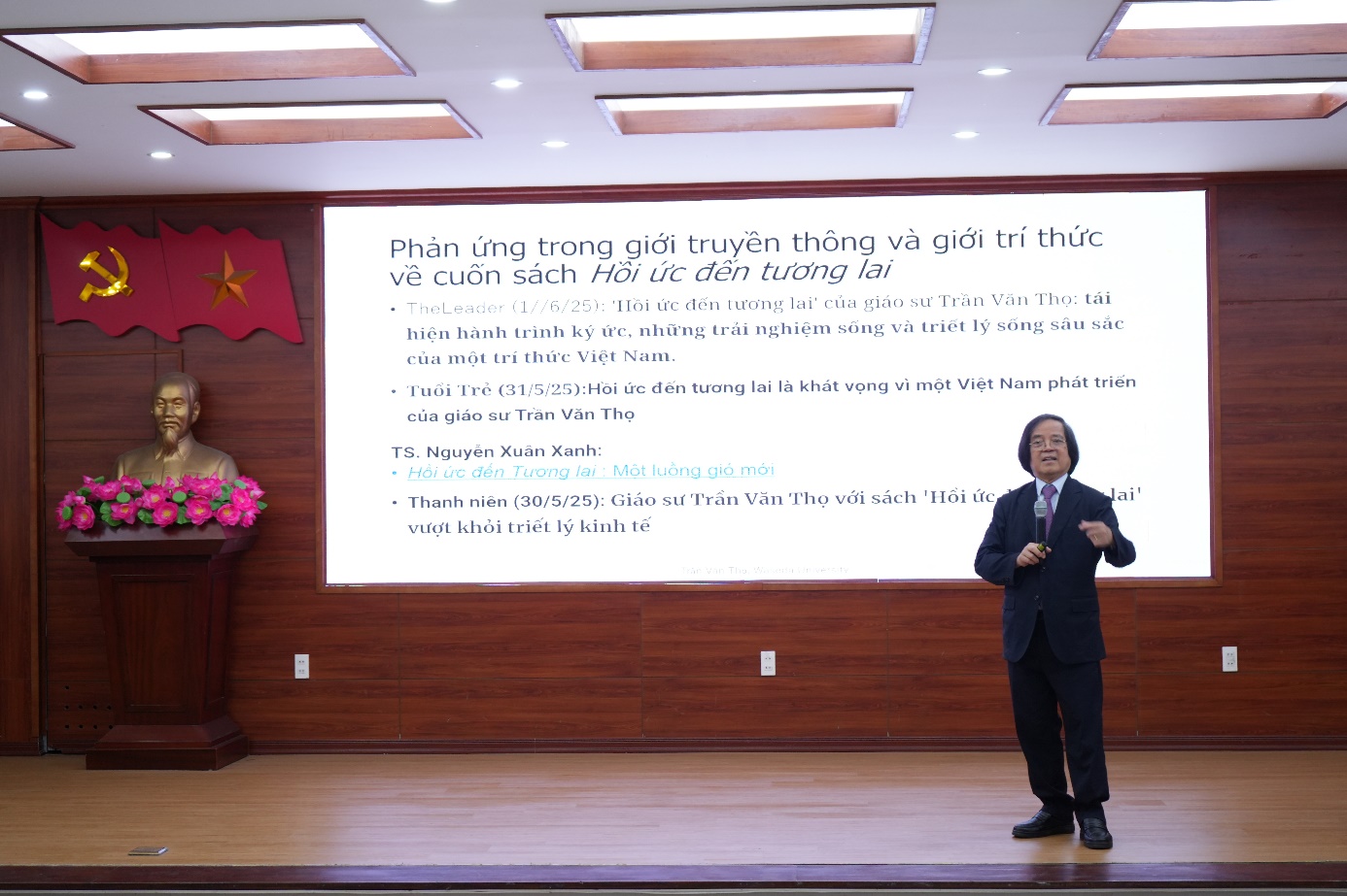 Tại chương trình, cuốn sách mới của Giáo sư Trần Văn Thọ – “Hồi ức đến tương lai” – đã được ra mắt. Đây là tác phẩm không chỉ kể lại hành trình cuộc đời, mà còn là sự lắng đọng tư duy về con đường phát triển của đất nước, những kinh nghiệm và bài học quý báu rút ra từ Nhật Bản, Hàn Quốc, Đài Loan và cả chính Việt Nam trong suốt hàng chục năm chuyển mình.