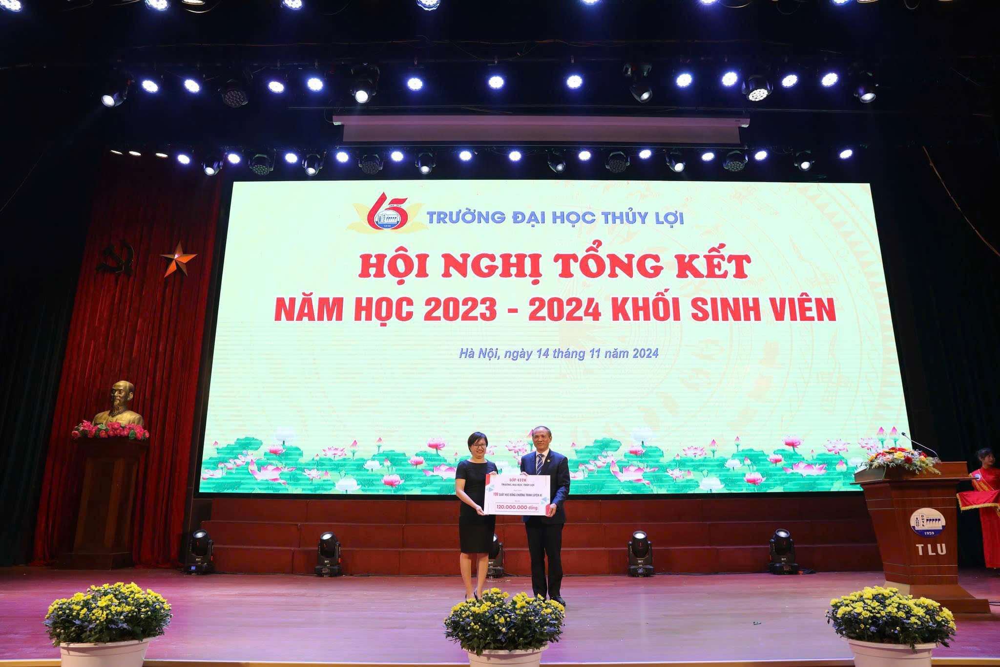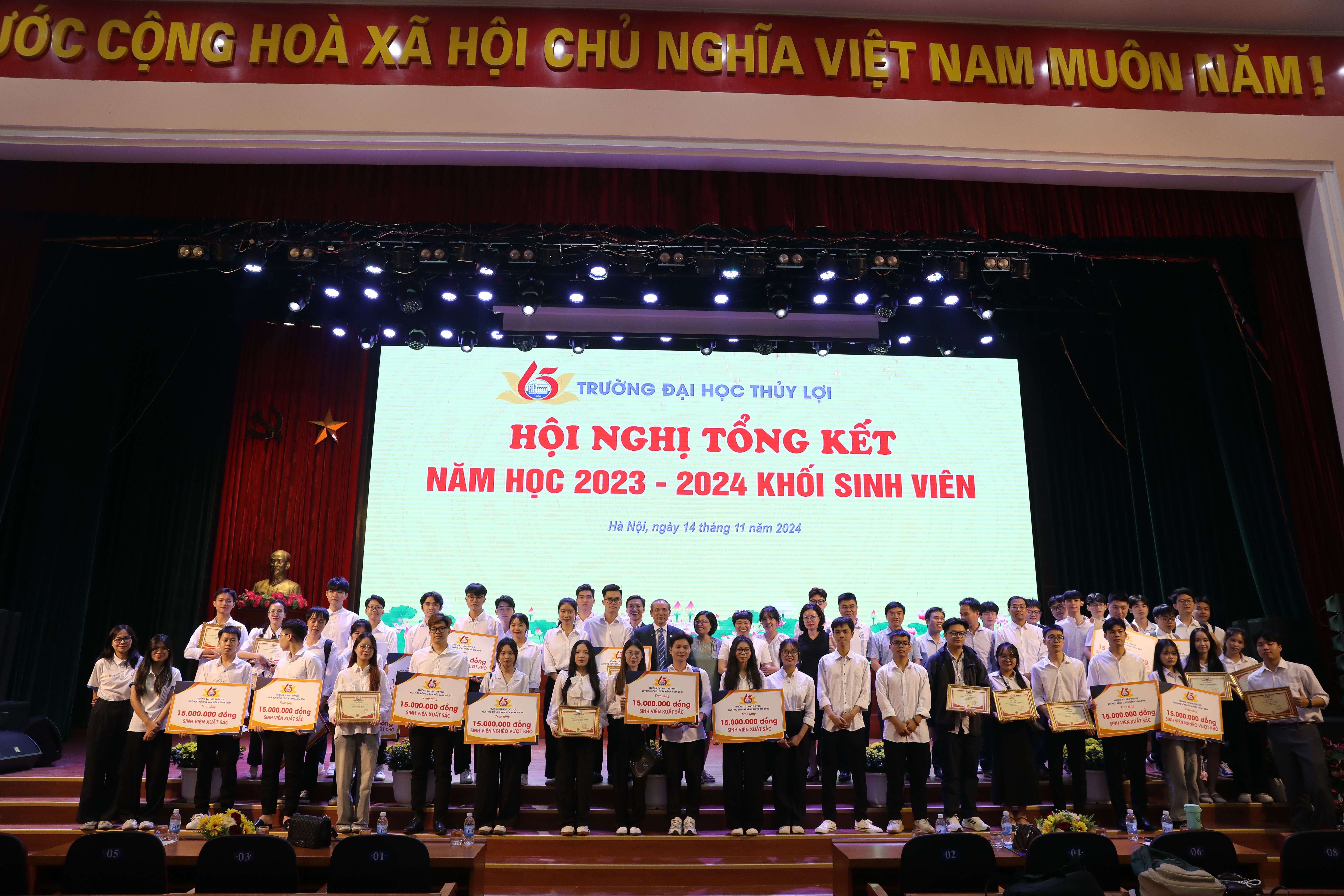 Hội nghị Tổng kết năm học 2023 – 2024 khối sinh viên diễn ra vào tối 14/11, Trường Đại học Thủy lợi đã trao tặng giấy khen và phần thưởng cho: 149 sinh viên đạt danh hiệu “Sinh viên Xuất sắc”; 805 sinh viên đạt danh hiệu “Sinh viên Giỏi”. Tặng giấy khen cho 2252 sinh viên đạt danh hiệu “Sinh viên Tiên tiến”. Khen thưởng 18 tập thể Xuất sắc và 26 tập thể Tiên tiến.