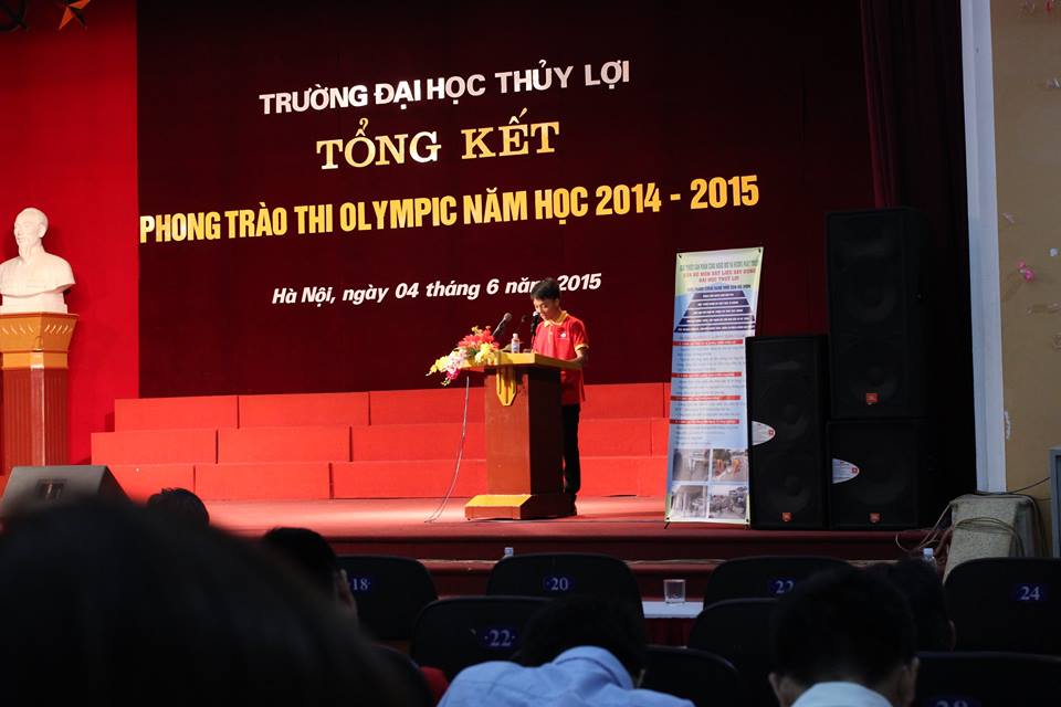 Nhằm đánh giá những kết quả, thành tích đã đạt được trong công tác Olympic năm học 2014 – 2015 cũng như đưa ra phương hướng hoạt động trong năm học 2015 – 2016, chiều 04/06/2015, tại Hội trường T45, trường Đại học Thuỷ lợi đã tổ chức Hội nghị tổng kết phong trào Olympic năm học 2014 – 2015. Đến dự hội nghị có GS.TS. Trịnh Minh Thụ – Phó Bí thư Đảng ủy, Phó hiệu trưởng nhà trường đại diện các phòng, khoa, ban, trung tâm, đại diện Đoàn thanh niên, Hội sinh viên, các giảng viên phụ trách các đội tuyển cùng đông đảo các bạn sinh viên là thành viên các đội thi Olympic trường Đại học Thuỷ lợi.