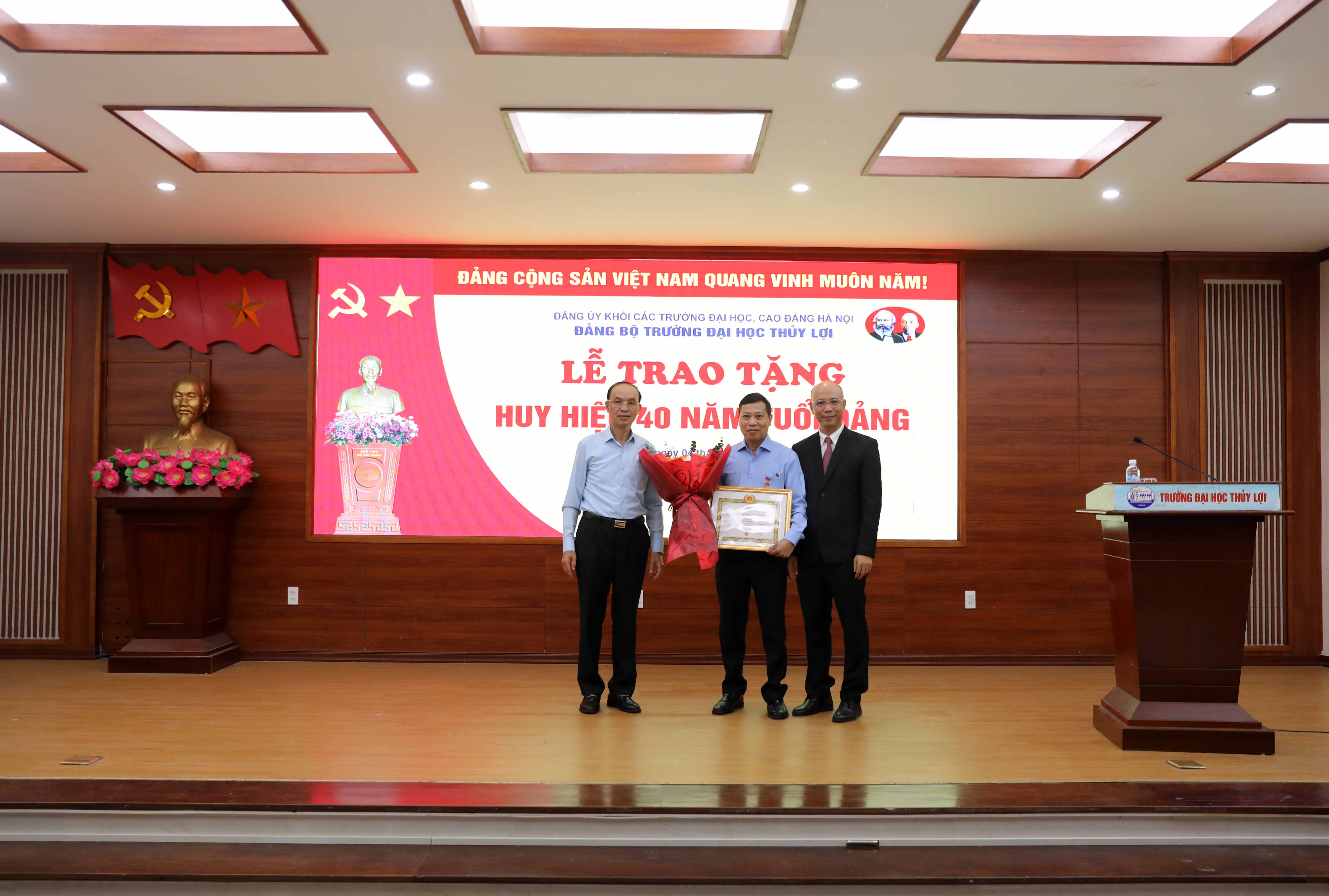 Đại diện lãnh đạo Nhà trường trao tặng Huy hiệu 40 năm tuổi đảng cho đồng chí Nghiêm Văn Lợi