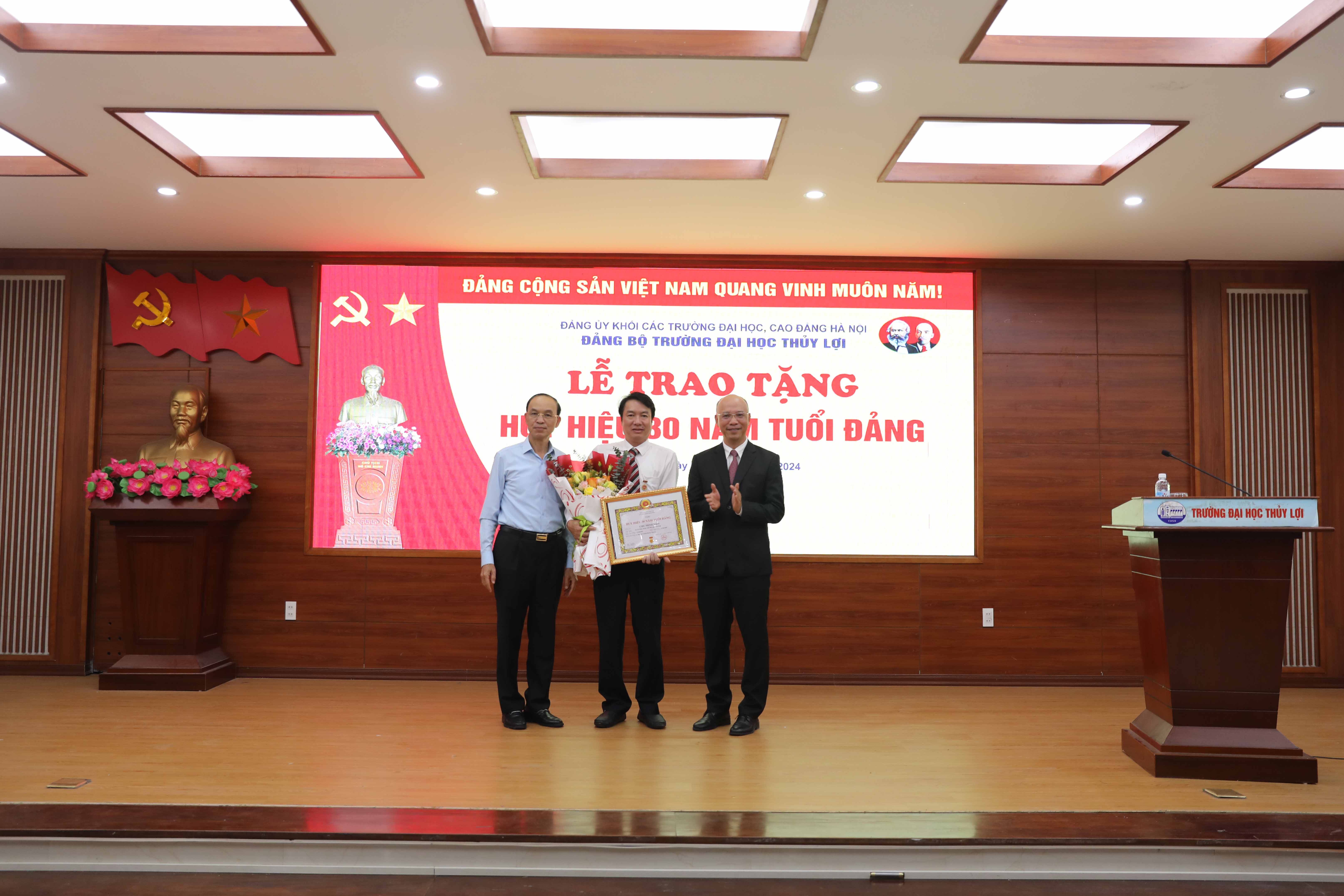 Đại diện lãnh đạo Nhà trường trao tặng Huy hiệu 30 năm tuổi đảng cho đồng chí Chu Minh Tiến