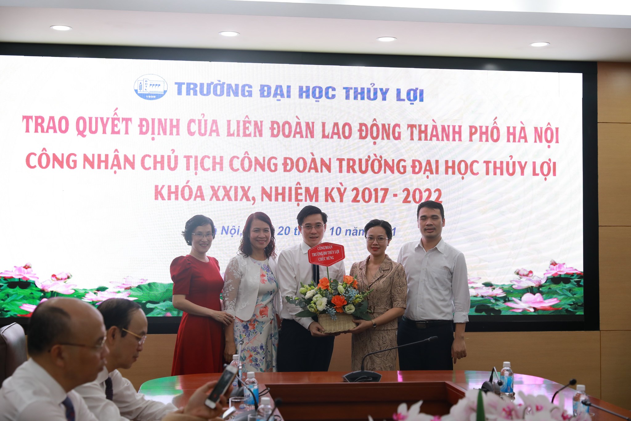 Theo đó, PGS.TS Nguyễn Lương Bằng, Bí thư chi bộ, Trưởng phòng Hành chính – Tổng hợp, ủy viên Ban chấp hành Công đoàn Trường được công nhận là Ủy viên thường vụ và giữ chức danh Chủ tịch Công đoàn Trường Đại học Thủy lợi nhiệm kì 2017-2022.