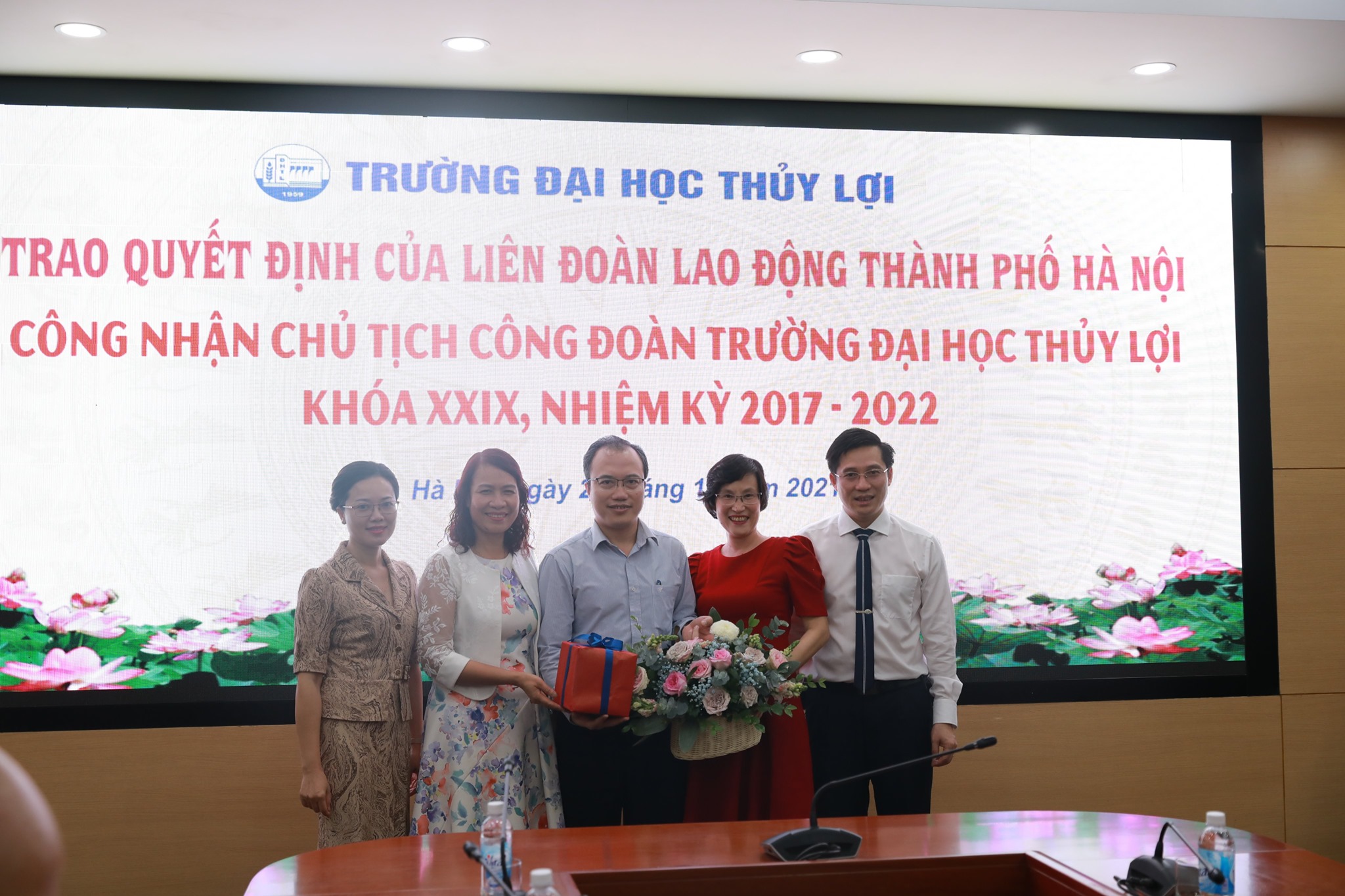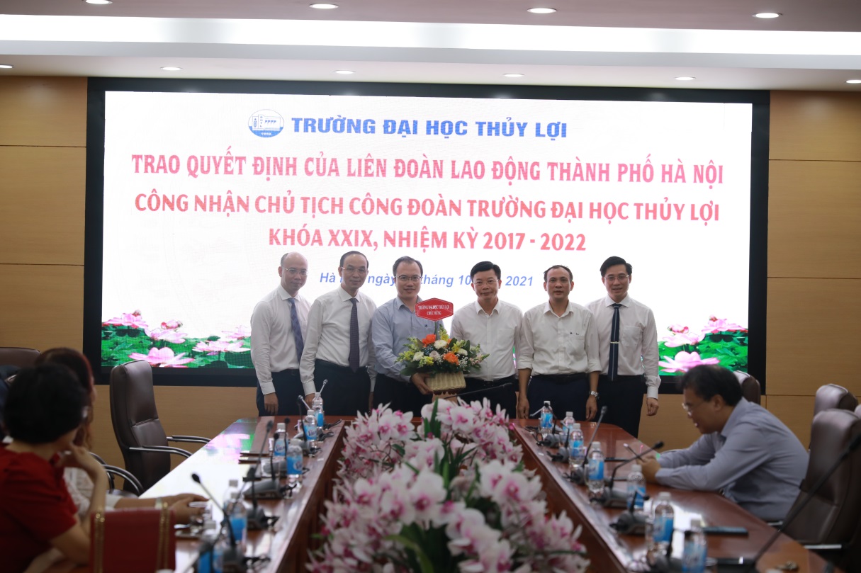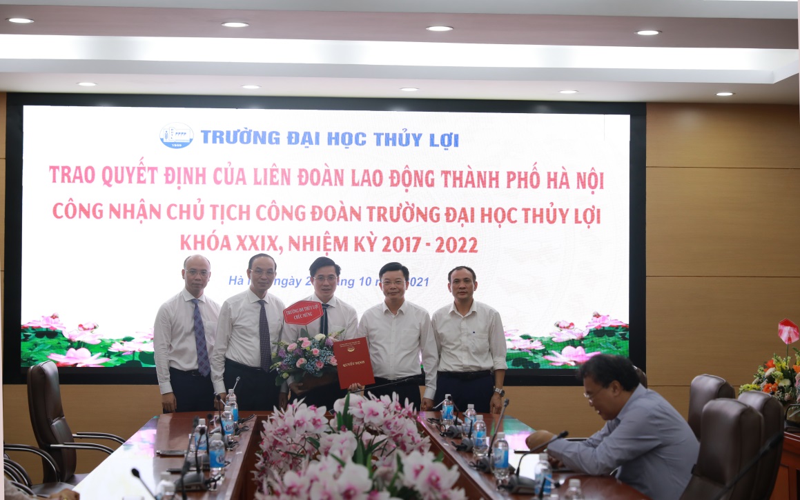 Theo đó, PGS.TS Nguyễn Lương Bằng, Bí thư chi bộ, Trưởng phòng Hành chính – Tổng hợp, ủy viên Ban chấp hành Công đoàn Trường được công nhận là Ủy viên thường vụ và giữ chức danh Chủ tịch Công đoàn Trường Đại học Thủy lợi nhiệm kì 2017-2022.