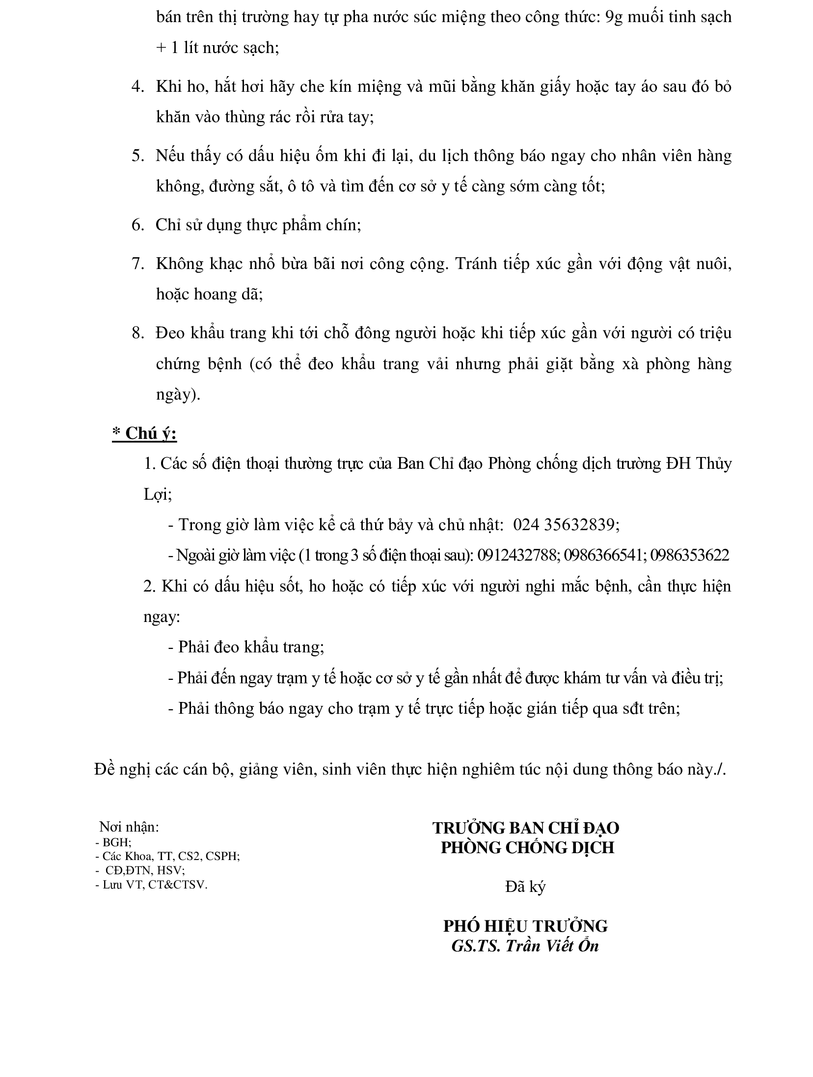 Nếu sinh viên có biểu hiện ho, sốt thì không đến trường, nên ở nhà cho đến khi khỏi hẳn. Nếu bị ho, sốt, khó thở cần đến ngay y tế phường, xã nơi cư trú để được hướng dẫn theo quy định và tuân thủ các yêu cầu về phòng dịch của y tế nơi cư trú.