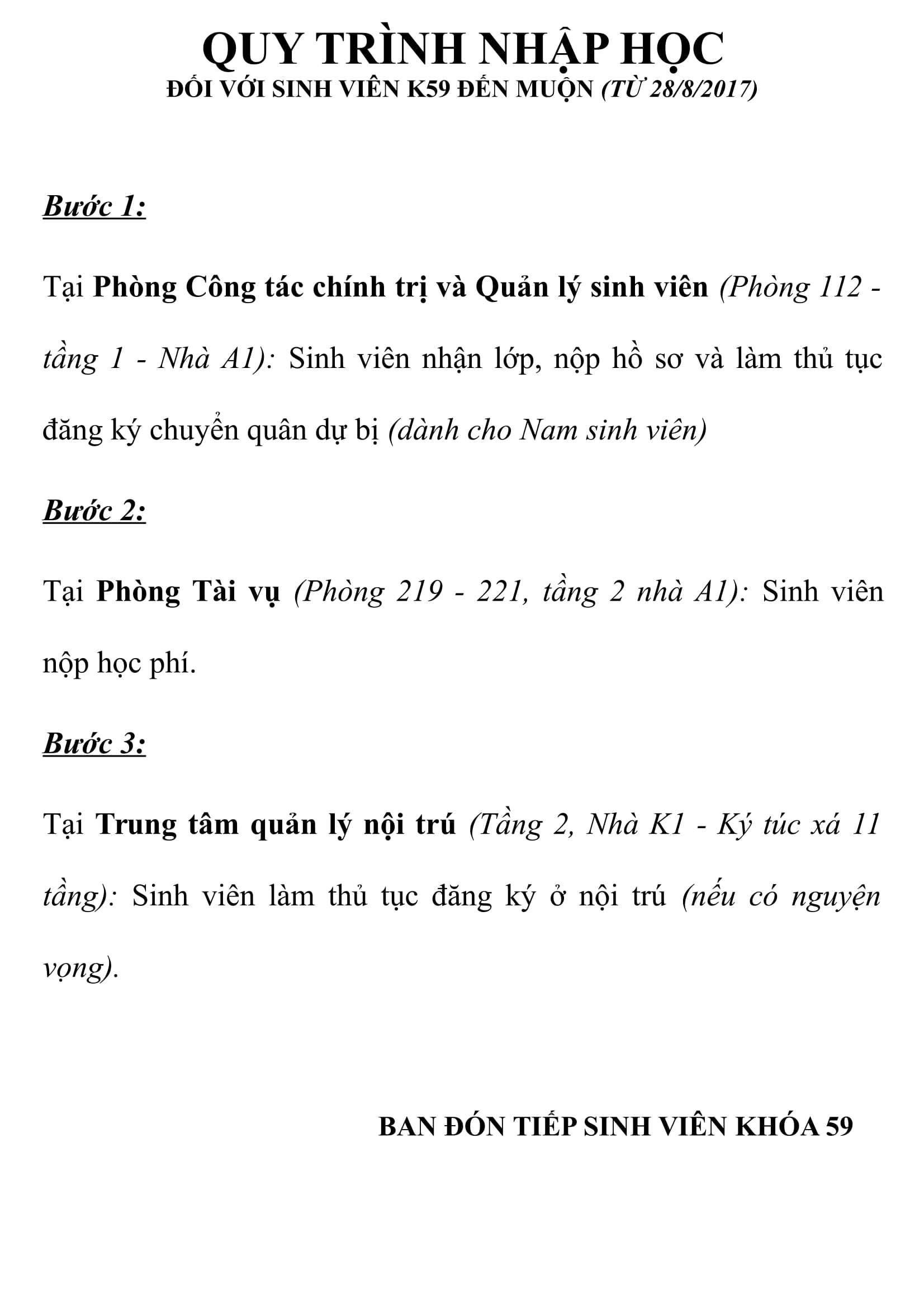 Trình tự nhập học cho sinh viên trúng tuyển nguyện vọng bổ sung Đăng vào 18 Tháng 8, 2017 bởi Data OldTheo Dõi Trường Đại Học Thủy Lợi Trên Kế hoạch sinh hoạt công dân – sinh viên tuần đầu khóa K59 – Hệ đại học chính quyChi tiết xem tại đâyThực hiện: Bình Dương Chúc mừng các tân kỹ sư Đại học Thủy lợiChương trình Trao đổi Học giả Fulbright Hoa Kỳ – ASEAN và Chương trình Học giả Fulbight Việt Nam 2018 Bài viết cùng chủ đề: Chi bộ Luật và Lý luận chính trị kết nạp Đảng viên mới, nâng cao chất lượng công tác xây dựng Đảng trong sinh viên Trường Đại học Thủy lợi gặp mặt lưu học sinh Lào nhân kỷ niệm 50 năm Quốc khánh CHDCND Lào Gặp mặt Đội tuyển Olympic Tin học Toàn quốc 2025 của Trường Đại học Thủy lợi Lễ Chào cờ đầu tháng 12/2025 tại Trường Đại học Thủy lợi: Bồi đắp truyền thống, lan tỏa tinh thần trách nhiệm của Tuổi trẻ Đoàn sinh viên Trường Đại học Thủy lợi đạt thành tích cao tại kỳ thi Olympic Vật lý Sinh viên toàn quốc năm 2025 Trường Đại học Thủy lợi gặp mặt đội tuyển sinh viên dự Olympic Vật lý toàn quốc năm 2025 Trường Đại học Thủy lợi đạt hai giải Nhì tại Giải thưởng Loa Thành năm 2025 HLV Vũ Văn Trung, Đội bóng đá nam ĐH Thủy lợi giấc mơ lần thứ 3 vô địch