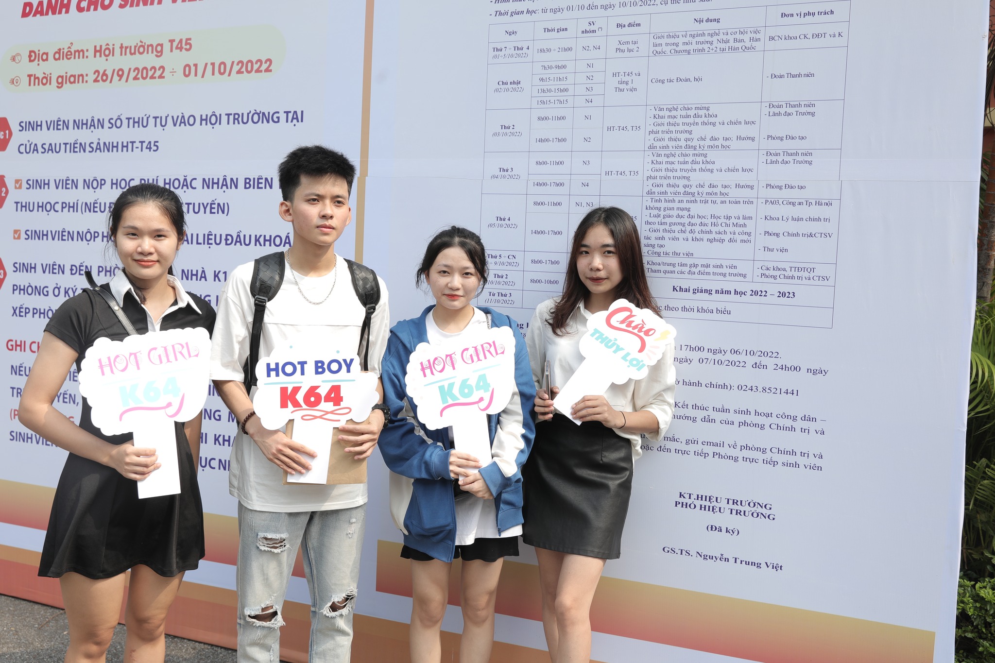 Theo kế hoạch, Trường Đại học Thủy lợi tổ chức đón sinh viên nhập học trực tiếp đến hết buổi sáng ngày 1/10/2022. Ngay sau đó sinh viên sẽ bước vào tuần Sinh hoạt công dân – sinh viên đầu khóa. Theo đó, thời gian đăng ký học thử: từ ngày 05/10/2022 đến 17h00 ngày 06/10/2022. Thời gian đăng ký học chính thức: từ 17h00 ngày 07/10/2022 đến 24h00 ngày 08/10/2022.