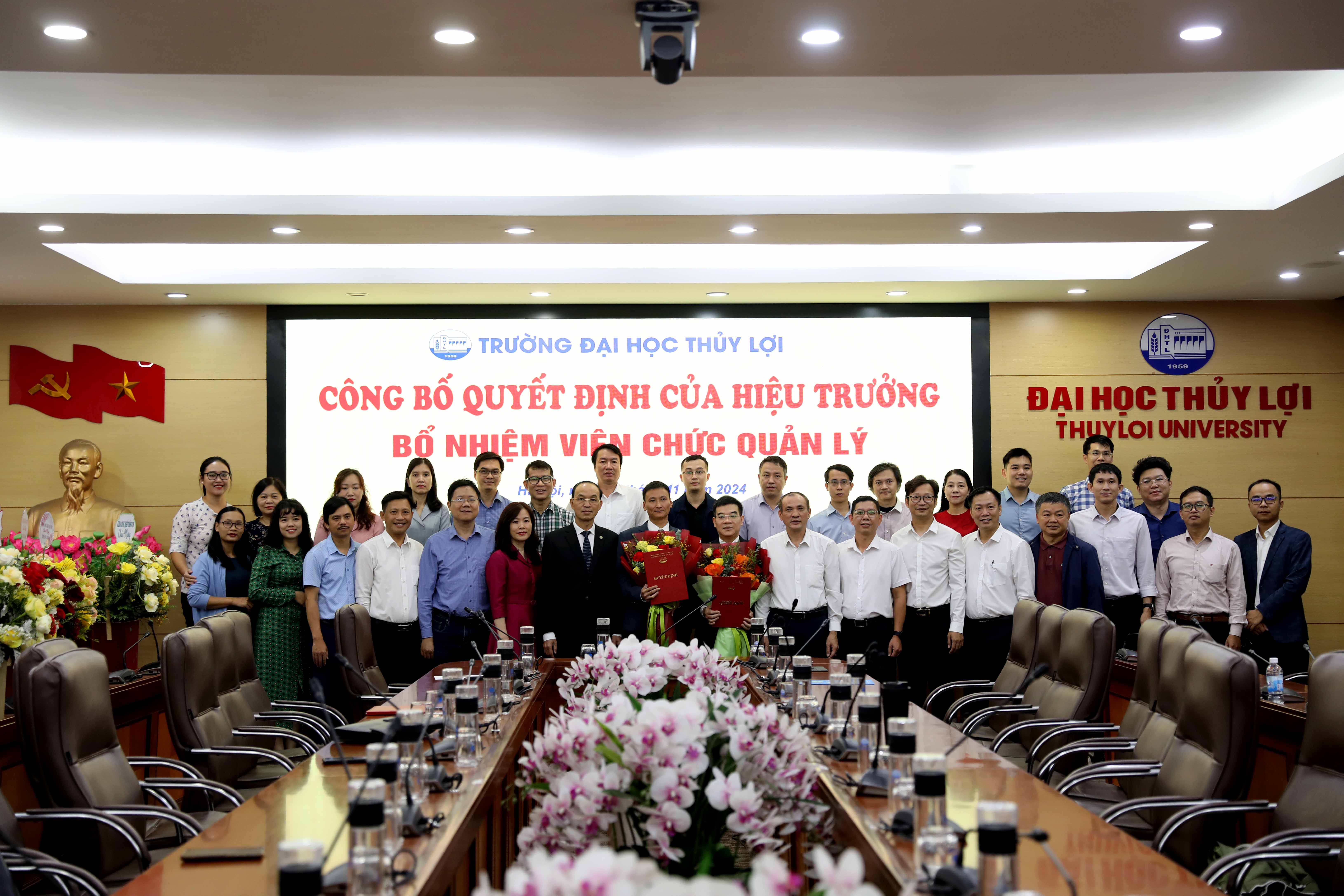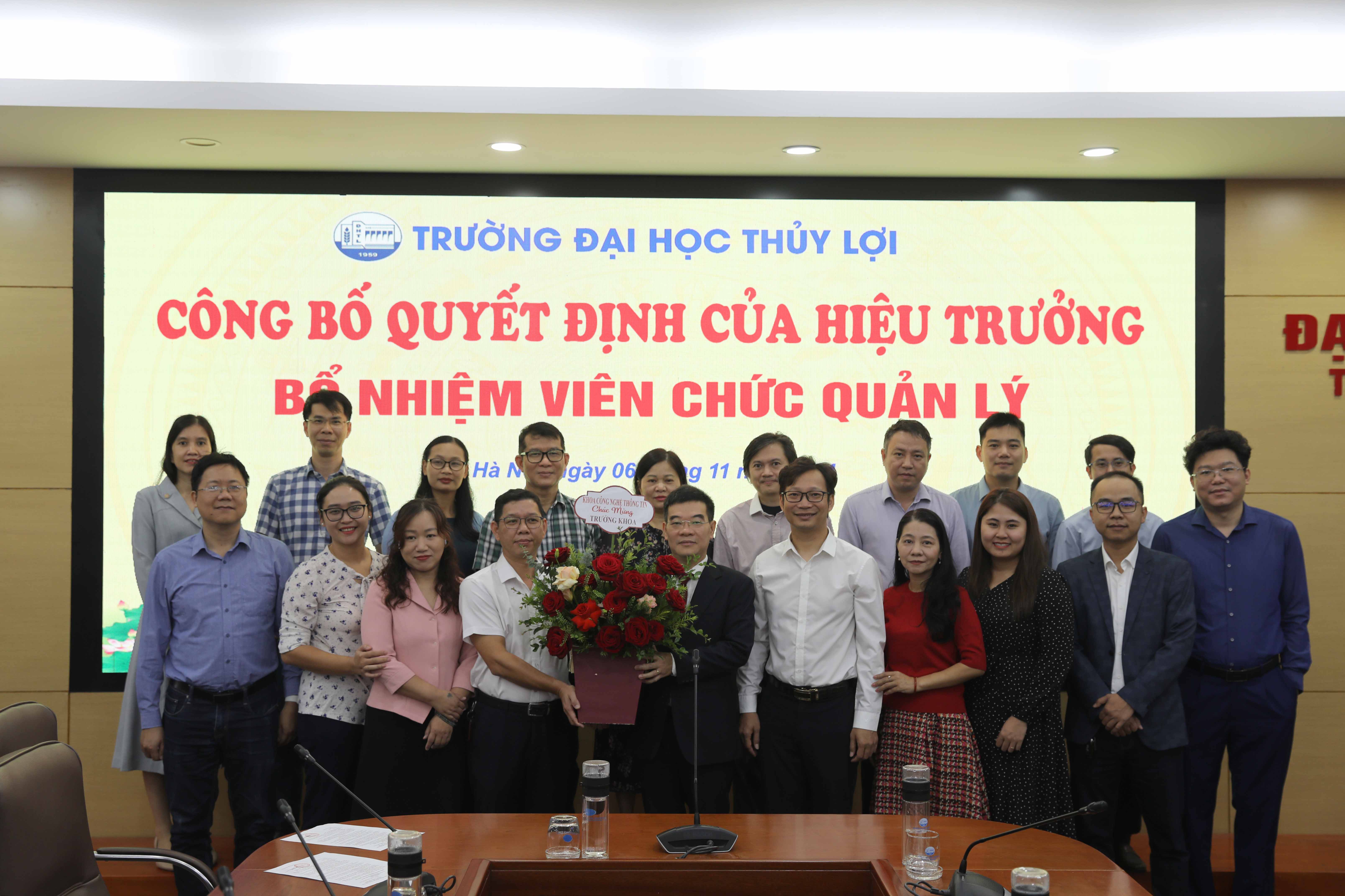Lãnh đạo Trường Đại học Thủy lợi trao quyết định và chúc mừng các viên chức được bổ nhiệm