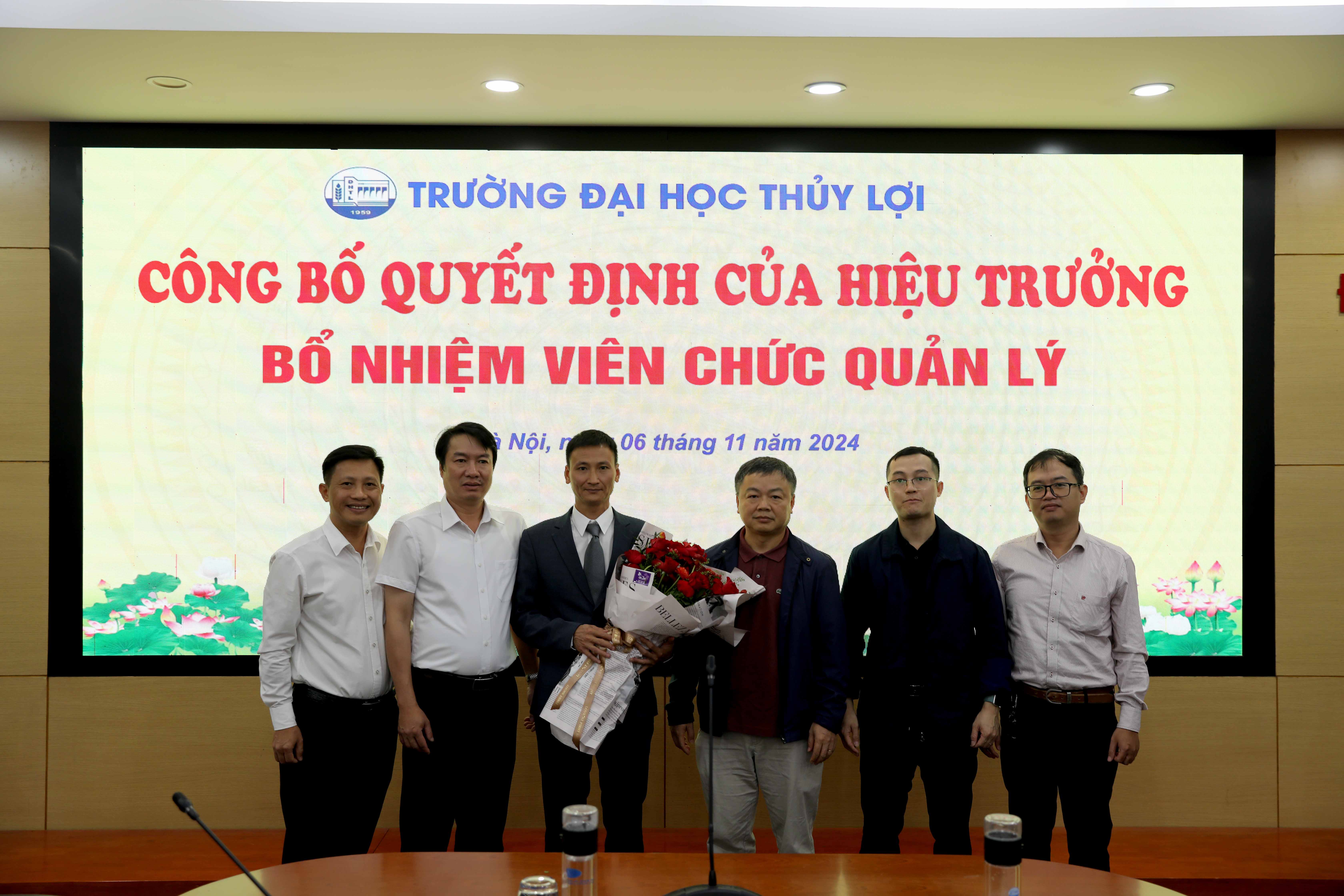 Lãnh đạo Trường Đại học Thủy lợi trao quyết định và chúc mừng các viên chức được bổ nhiệm