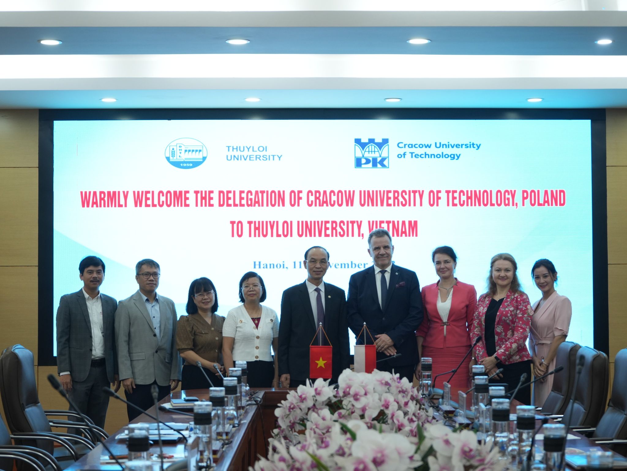 Sau bài phát biểu khai mạc và giới thiệu về trường ĐHTL của GS. Trịnh Minh Thụ – Hiệu Trưởng, GS. Stanislaw RYBICKI – Trưởng Khoa kỹ thuật môi trường và Năng lượng (CUT) thay mặt đoàn đại biểu bày tỏ lòng cảm ơn sâu sắc tới Ban lãnh đạo Nhà trường đã tiếp đón nồng hậu, chu đáo. GS. Stanislaw và Bà Katarzyna đã có bài chia sẻ giới thiệu về Đại học CUT với những thành tích nội bật trong các ngành kỹ thuật. Trường CUT đã ký hơn 290 hiệp định song phương với các trường đại học ở 53 quốc gia, được xếp hạng cao trong nhiều bảng xếp hạng quốc tế uy tín như Shanghai Ranking’s Global Ranking, QS World University Rankings …Trường có nhiều chính sách ưu đãi và thu hút sinh viên quốc tế từ nhiều nước trên thế giới đến học tập và trải nghiệm. Các chương trình được đào tạo bằng tiếng Anh, cung cấp chuyên môn sâu cũng như các khóa học 2-3 tuần về ngôn ngữ và văn hóa Ba Lan dành cho sinh viên quốc tế muốn tìm hiểu thêm về Ba Lan trước khi họ cam kết học hoặc nghiên cứu sau đại học tại châu Âu.