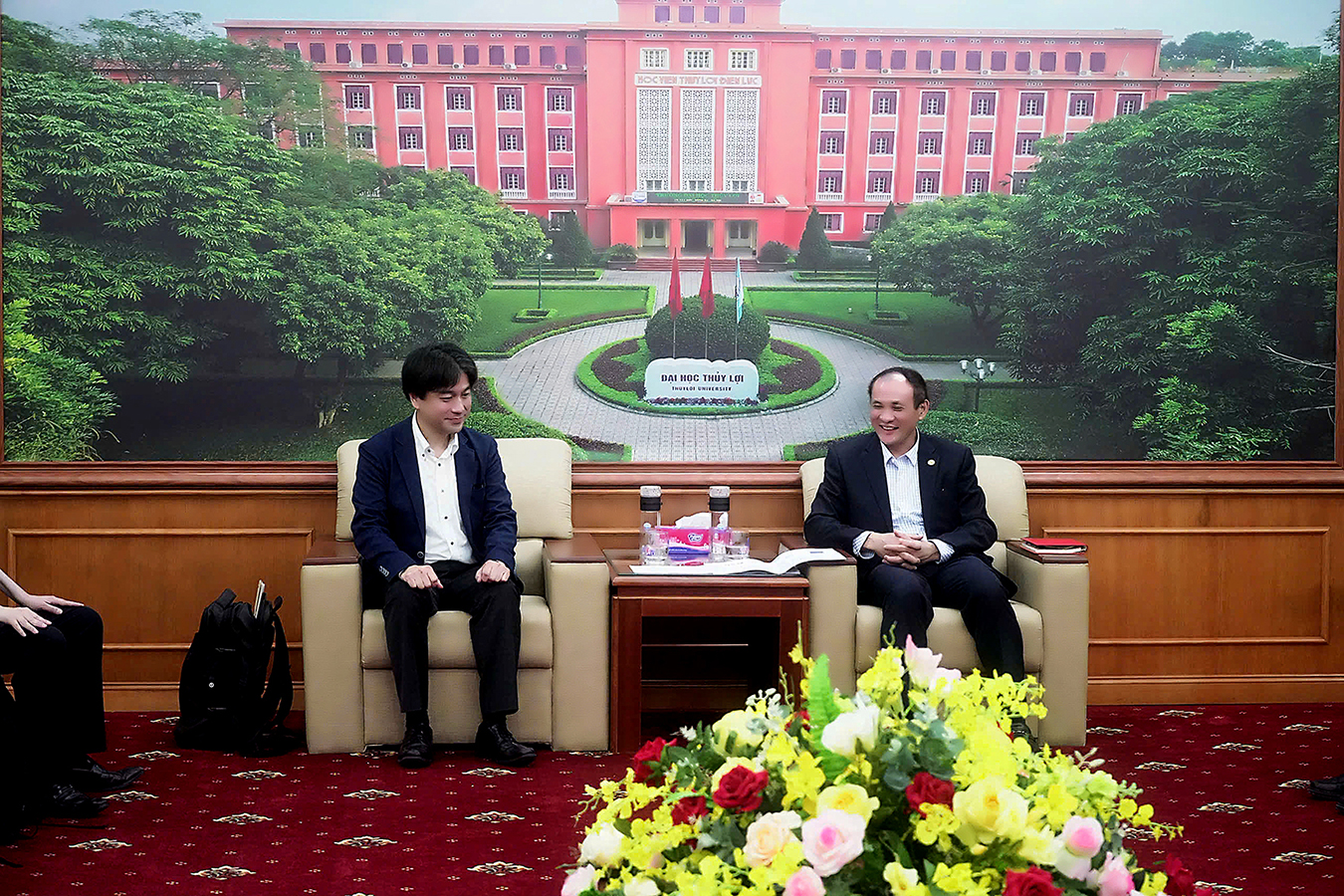 Phát biểu chào mừng Đoàn, GS.TS. Nguyễn Trung Việt bày tỏ niềm vui mừng khi được đón tiếp đoàn chuyên gia Nhật Bản – đoàn khách quốc tế đầu tiên trên cương vị Hiệu trưởng Nhà trường, đồng thời bày tỏ kỳ vọng buổi làm việc sẽ là bước khởi đầu quan trọng, mở ra những hướng hợp tác hiệu quả và bền vững cả về hợp tác quốc tế, nghiên cứu khoa học, khảo sát tư vấn thực tiễn cho các vấn đề về dự báo sớm phòng chống thiên tai, từ đó nâng cao thêm uy tín và năng lực đội ngũ các nhà khoa học của Trường ĐH Thủy lợi.