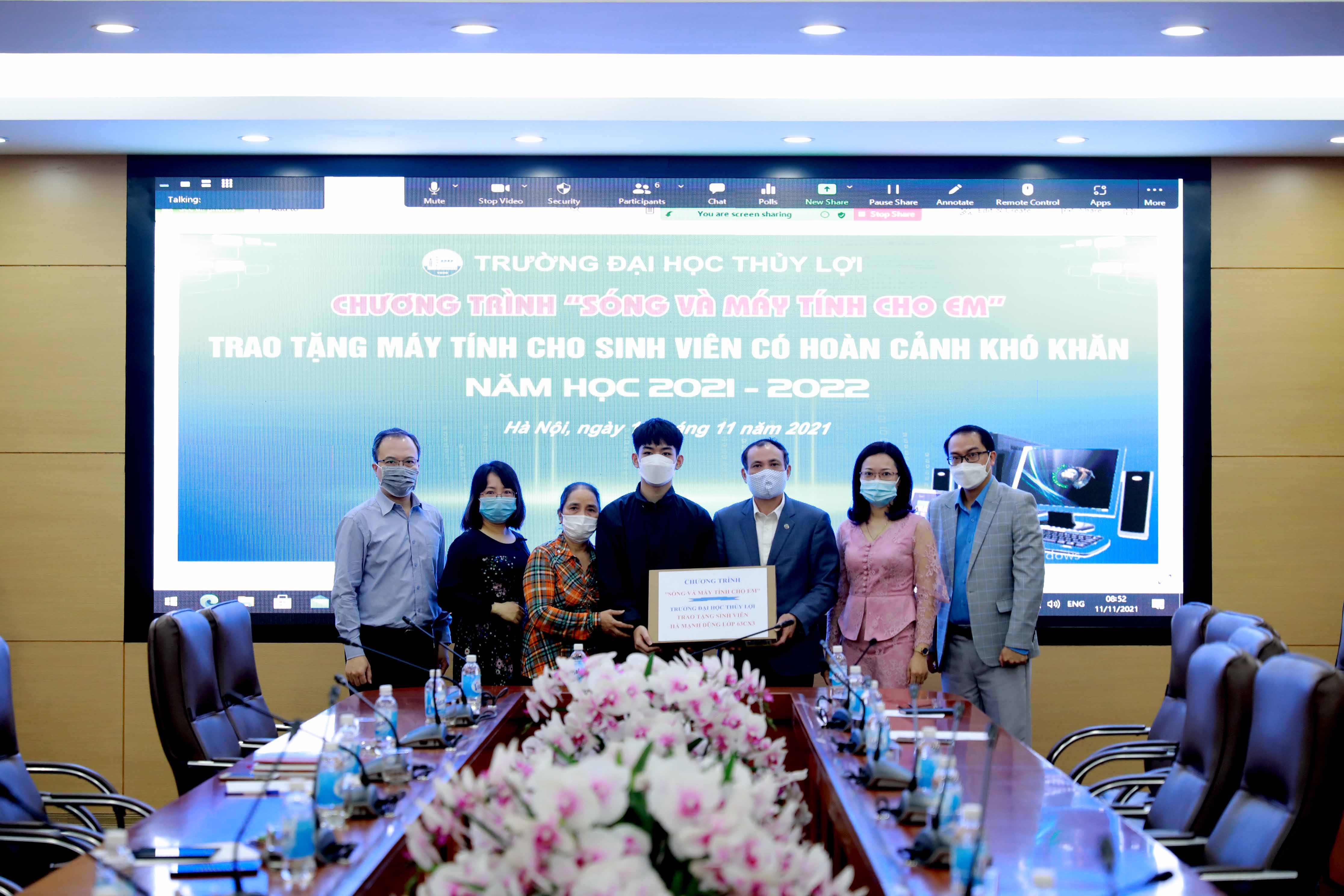 Tham dự buổi trao tặng, GS.TS Nguyễn Trung Việt – Phó Hiệu trưởng cho biết: do dịch bệnh nên ngành Giáo dục nói chung và Trường Đại học Thủy lợi nói riêng phải tạm dừng cho sinh viên đến trường, chuyển sang dạy và học trực tuyến, tuy nhiên, nhiều sinh viên có hoàn cảnh khó khăn, thiếu thiết bị học tập, ảnh hưởng đến việc tiếp thu kiến thức. Thông qua chương trình “Sóng và máy tính cho em” Nhà trường mong muốn sẽ giúp các em có thêm động lực, khắc phục khó khăn để hoàn thành tốt nhiệm vụ học tập.