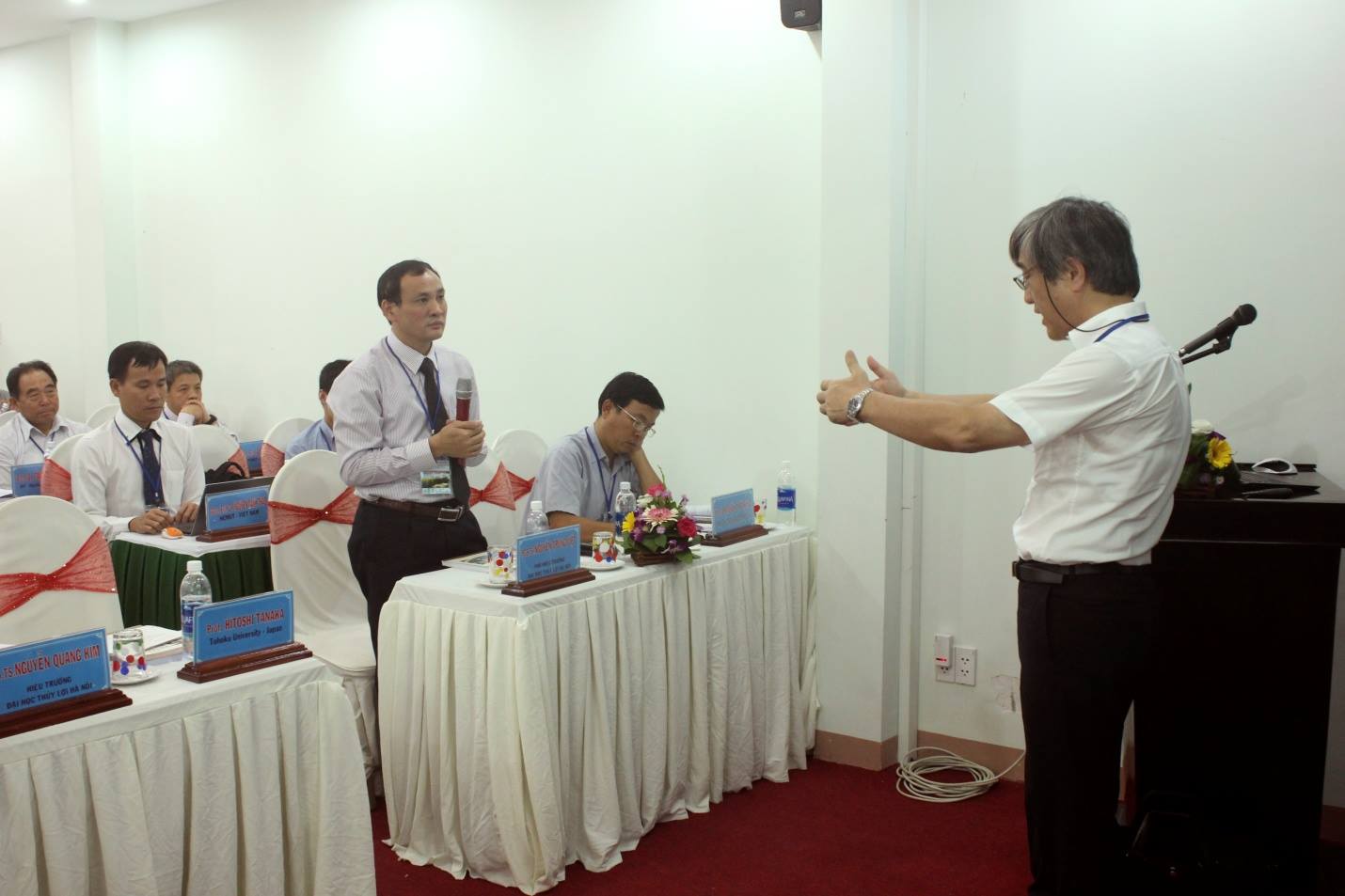 Hội thảo khoa học bao gồm 34 báo cáo viên được trình bày tại 01 phiên toàn thể và 03 tiểu ban chuyên môn song song trong ngày 18/9/2017. GS.TS. Hitoshi Tanaka, Khoa Xây dựng dân dụng và môi trường, Đại học Tohoku, Nhật Bản có bài thuyết trình đầu tiên tại phiên toàn thể “Đánh giá lượng vận chuyển bùn cát dọc bờ tại bờ biển Cửa Đại, Hội An”. Kết quả cập nhật này dựa trên sự phối hợp của nhóm nghiên cứu do GS.TS. Hitoshi Tanaka tại Nhật Bản và nhóm nghiên cứu của PGS.TS. Nguyễn Trung Việt, Trường Đại học Thủy lợi thực hiện. Báo cáo chỉ rõ một cách định lượng về nguyên nhân gây nên xói lở bờ biển Cửa Đại, cơ chế gây xói lở trong thời gian qua và đề xuất giải pháp cải tạo và tái tạo bãi, trả lại bãi biển Cửa Đại vốn có, được mệnh danh là một trong những bãi biển đẹp nhất hành tinh. Bên cạnh đó, Ông Kenichiro Tachi, cố vấn cao cấp Cơ quan hợp tác quốc tế Nhật Bản tại Bộ NN&PTNT cũng có trình bày bài “Quản lý tổng hợp lưu vực sông và bờ biển tại Nhật Bản”. Đây là nội dung thú vị với nhiều kinh nghiệm quý báu về những thành công đã đạt được, kể cả những thất bại đã phải đối mặt ở Nhật Bản, đặc biệt những kinh nghiệm đặc biệt quan trọng trong chính sách quản lý tổng hợp về vùng cửa sông, bờ biển và lưu vực sông. Hy vọng rằng, việc chia sẻ về mặt thể chế (lượng hóa bằng Luật quản lý sông, luật quản lý biển ở Nhật Bản) sẽ góp phần hữu ích về mặt chính sách quản lý ở Việt Nam. Cũng trong khuôn khổ hội thảo này, Trường Đại học Thủy lợi tham gia trình bày gần 10 báo cáo nghiên cứu tại các tiểu ban song song.
