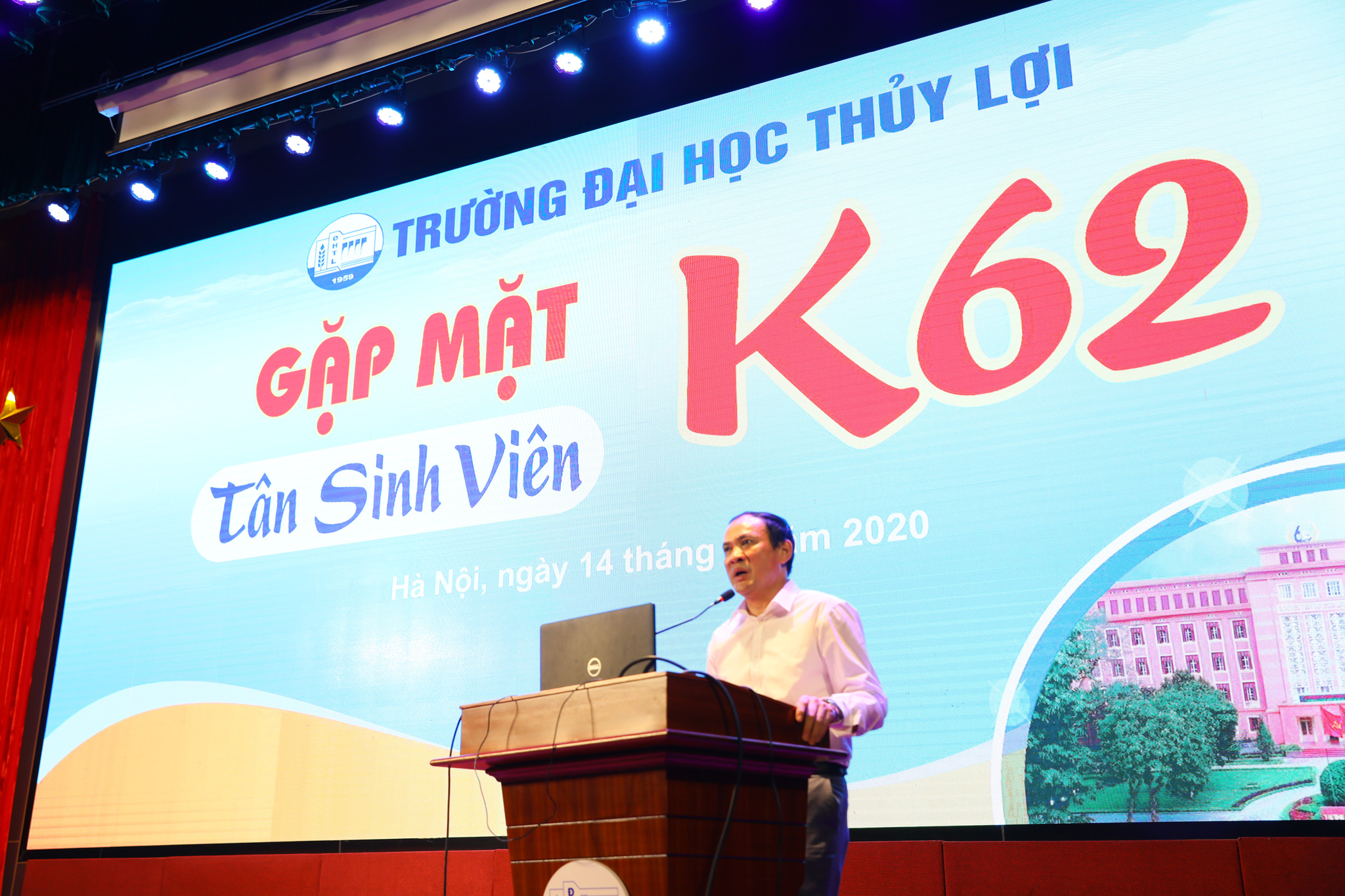 Phát biểu chào mừng, GS.TS Nguyễn Trung Việt – Phó hiệu trưởng chúc mừng các em khóa 62 đã chính thức trở thành sinh viên của Trường Đại học Thủy lợi. Với truyền thống hơn 60 năm xây dựng và phát triển, Nhà trường khẳng định sẽ tạo mọi điều kiện tốt nhất để sinh viên phát triển một cách toàn diện về cả trí lực và thể lực.