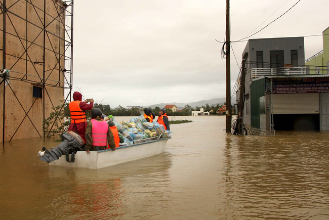 Nỗ lực đưa hàng cứu trợ tới người dân vùng lũ Quảng Bình (Ảnh: TTXVN)