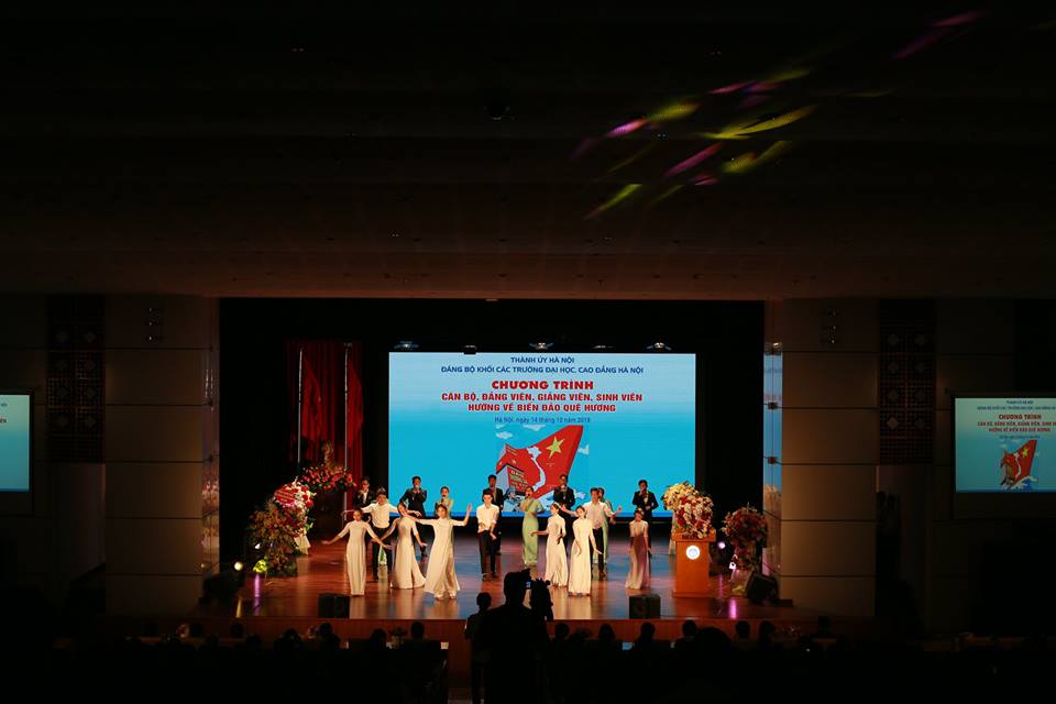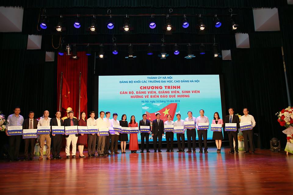 Phát biểu tại chương trình, đồng chí Vũ Tuấn Dũng, Bí thư Đảng ủy Khối các trường Đại học, Cao đẳng Hà Nội cho biết, những năm qua, Đảng bộ và Nhân dân Thủ đô đã có nhiều hoạt động ý nghĩa hướng về biển đảo thân yêu, các đơn vị đã có những hoạt động cụ thể hướng về biển đảo, như việc ủng hộ xây dựng nhà văn hóa đa năng tại Trường Sa, thăm hỏi đồng bào, nhân dân, chiến sĩ tại các đảo nổi, đảo chìm và các nhà dàn…