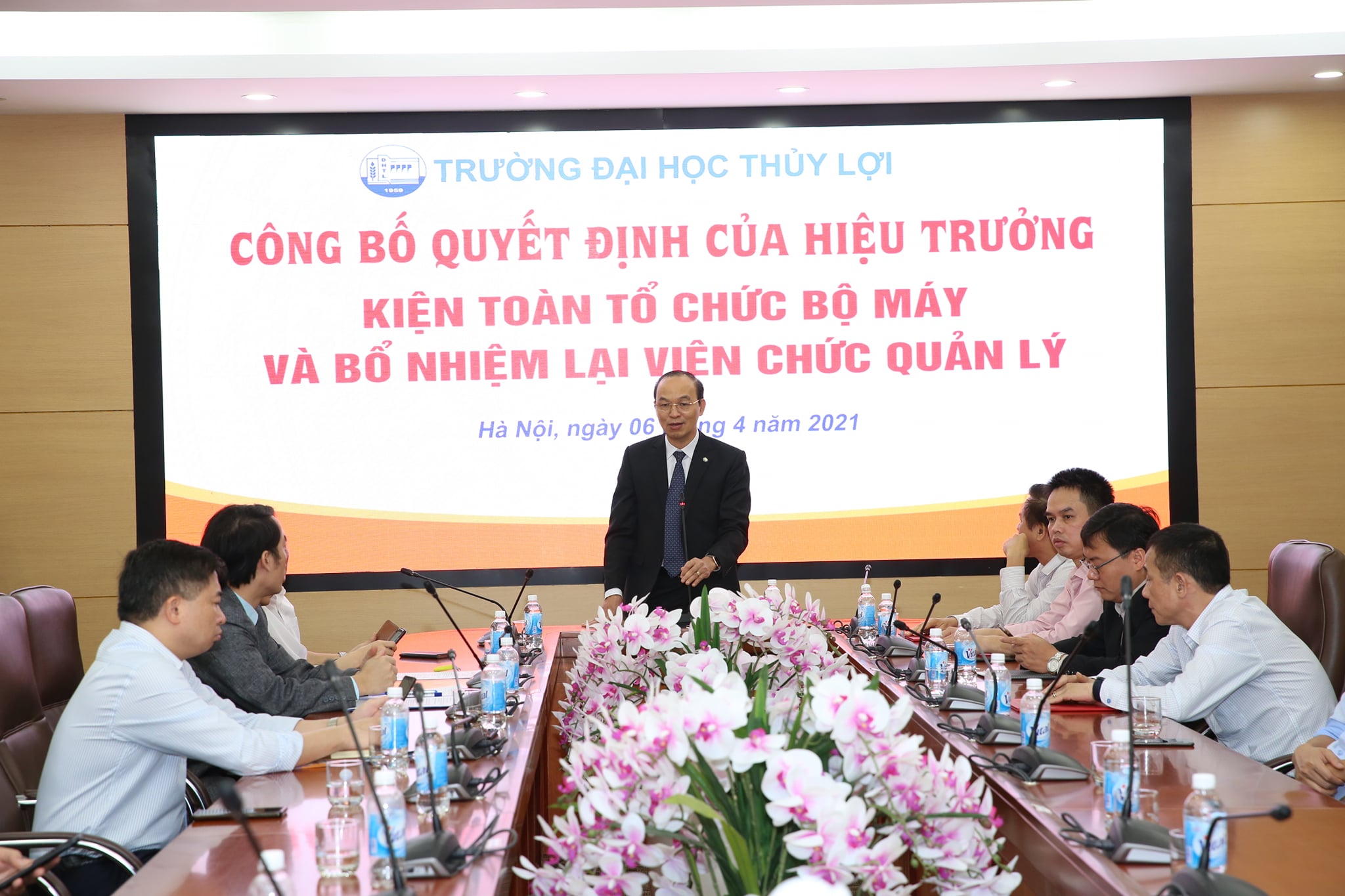 Theo đó, Hiệu trưởng Trường Đại học Thủy lợi đã ký quyết định kiện toàn tổ chức một số bộ môn trực thuộc khoa Công trình, khoa Hóa và Môi trường, khoa Kỹ thuật tài nguyên nước, khoa Lý luận chính trị như sau: