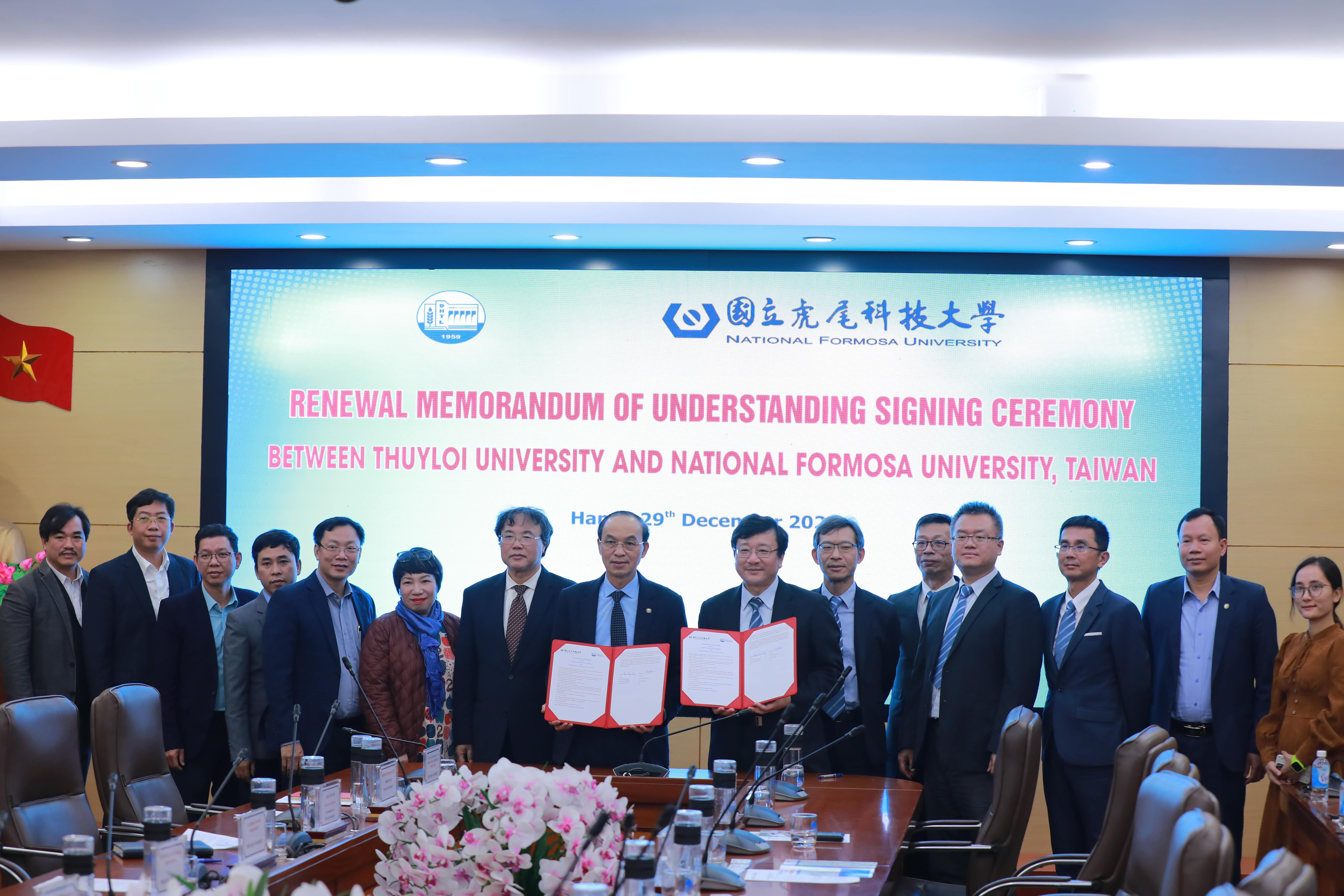 Trường Đại học Thủy lợi đã chính thức ký kết Biên bản ghi nhớ (MoU) với Trường Đại học Quốc gia Formosa vào năm 2019, một trong các Trường Đại học hàng đầu của Đài Loan.