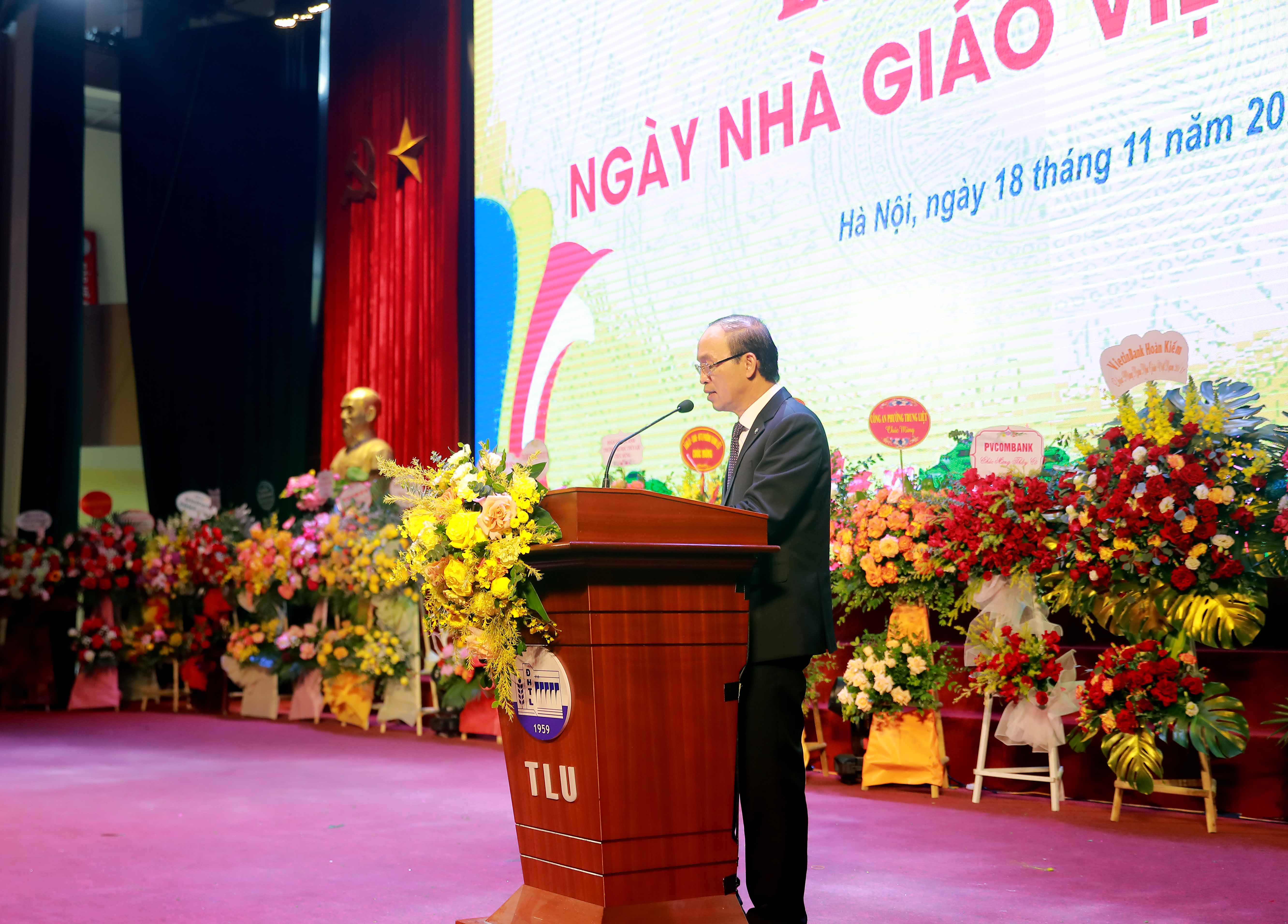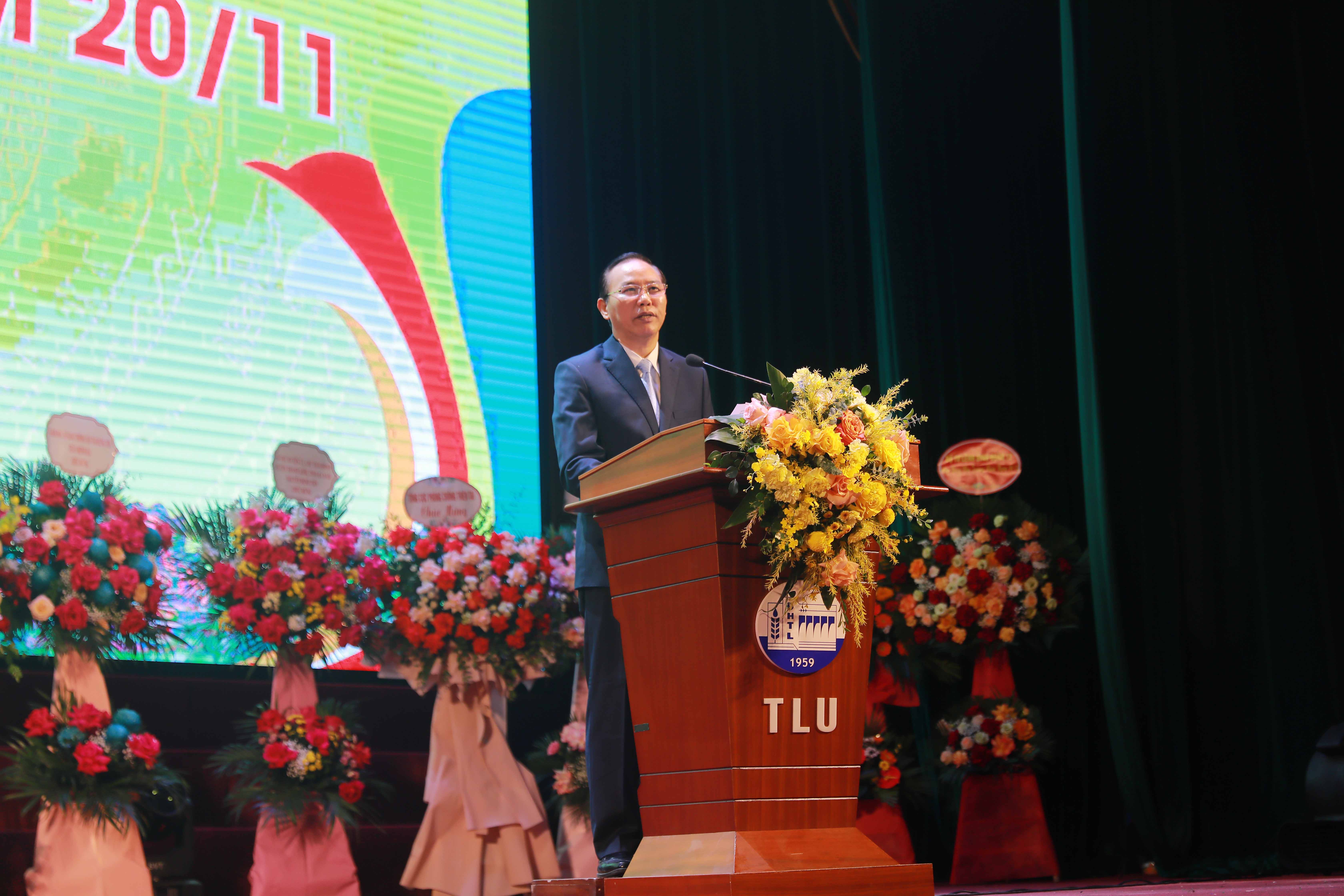Trong bài diễn văn, GS.TS Trịnh Minh Thụ – Hiệu trưởng Nhà trường nhấn mạnh: Năm học vừa qua là năm đầu tiên Trường Đại học Thủy lợi triển khai chiến lược phát triển trường giai đoạn 2021-2030 và tầm nhìn đến năm 2050. Trường Đại học Thủy lợi phát triển thành cơ sở giáo dục đa ngành định hướng nghiên cứu, đào tạo nguồn nhân lực chất lượng cao gắn với nhu cầu xã hội; với môi trường quản trị tiên tiến, môi trường học thuật sáng tạo có uy tín trong cộng đồng quốc tế. Với sự đồng thuận và quyết tâm cao, Nhà trường đã đạt được những thành quả nhất định trên tất cả các lĩnh vực công tác từ đào tạo, nghiên cứu khoa học và phục vụ sản xuất, hợp tác quốc tế, nâng cao năng lực đội ngũ cán bộ, giảng viên, xây dựng nâng cấp cơ sở vật chất…