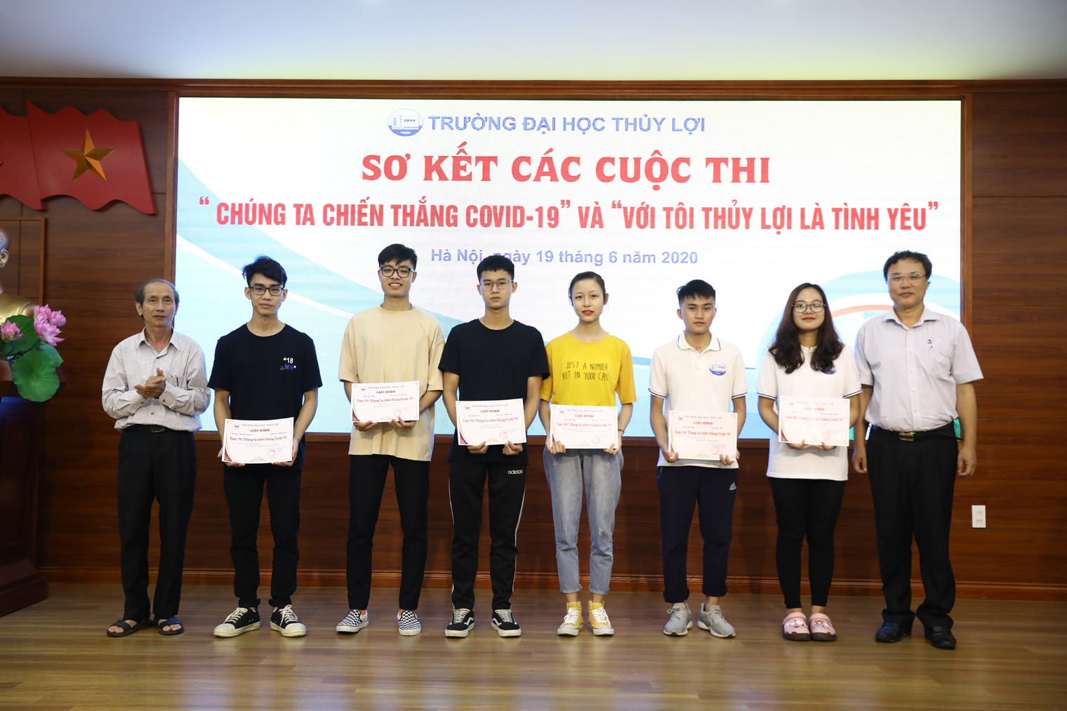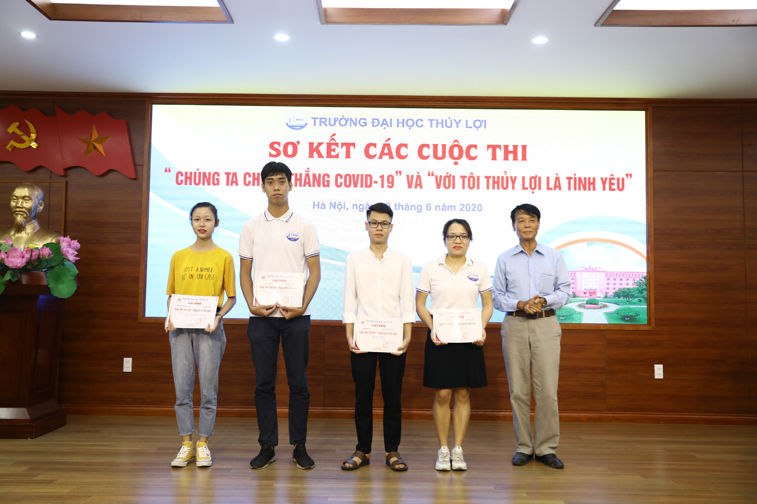 Cụ thể, Nhà trường đã tặng Giấy khen và phần thưởng cho 13 tập thể, cá nhân đạt giải trong cuộc thi “Chúng ta chiến thắng Covid19 với hạng mục Video – Clip, Nhạc gồm: 2 Giải Nhì, 4 Giải Ba, 2 Giải Khuyến khích. Hạng mục Thơ, Văn gồm: 2 Giải Nhì, 1 Giải Ba, 2 Giải Khuyến khích. Đồng thời, tặng Giấy chứng nhận tham gia cuộc thi cho 16 tập thể, cá nhân. Tặng Giấy khen và phần thưởng cho 05 tập thể, cá nhân đạt giải trong cuộc thi “Với tôi – Thủy lợi là tình yêu với 1 Giải Ba và 2 Giải Khuyến khích ở hạng mục Ảnh; 2 Giải Ba ở hạng mục Video – Clip, Nhạc.