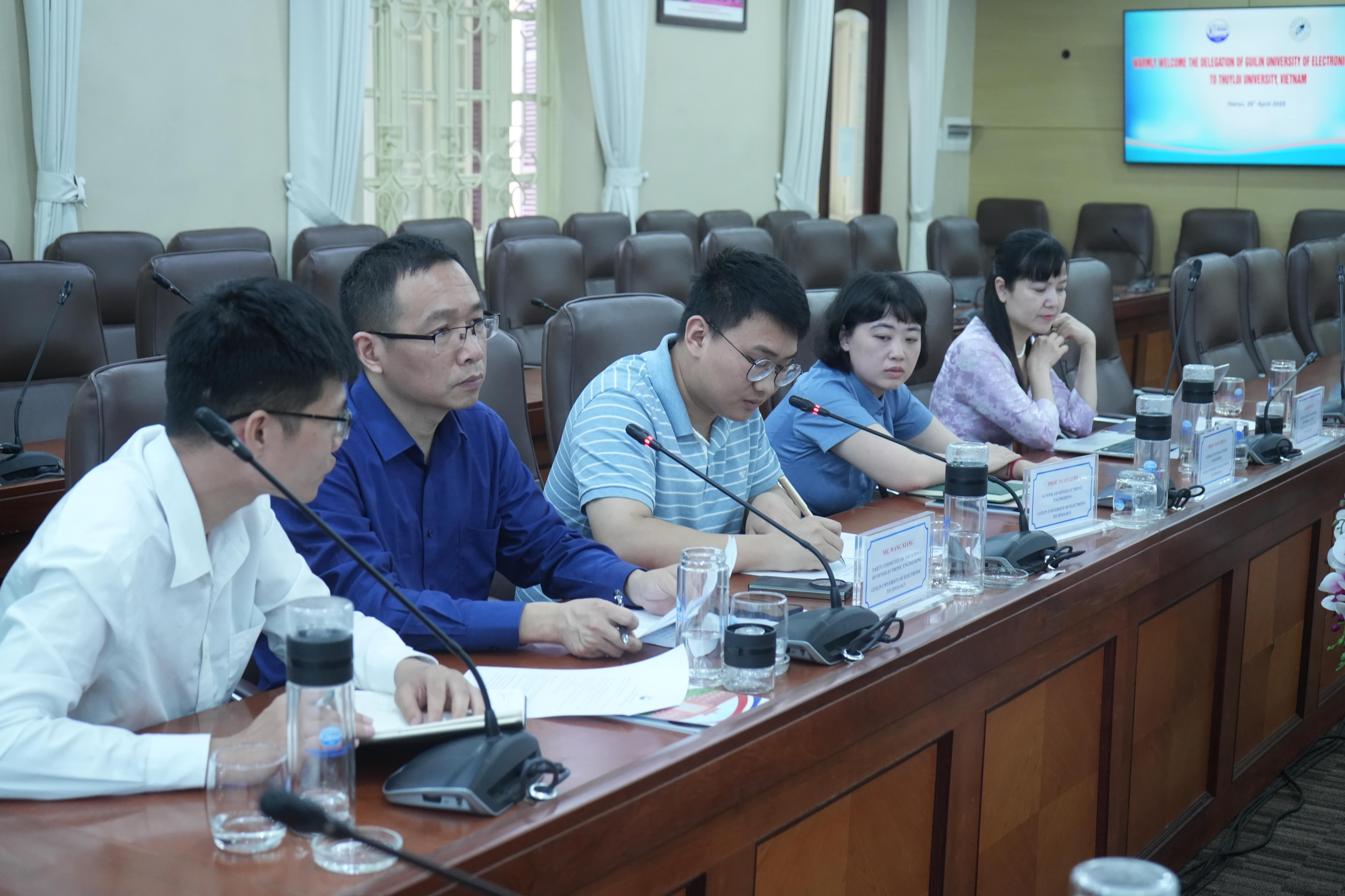 Trong phần trao đổi, hai bên đã tập trung thảo luận các khả năng hợp tác cụ thể, bao gồm cùng nghiên cứu và phát triển các chương trình đào tạo chuyên sâu về bán dẫn và AI; xây dựng các đề tài nghiên cứu chung về robot tự hành ứng dụng trong nông nghiệp, phòng chống thiên tai và quang điện tử. Trường ĐHTL đề xuất GUET hỗ trợ thiết bị nghiên cứu cho các phòng thí nghiệm, đồng thời phối hợp tổ chức hội nghị, hội thảo khoa học khu vực và quốc tế nhằm tăng cường trao đổi học thuật. Phía GUET cũng nhất trí và mong muốn đồng tổ chức các cuộc thi sáng tạo khoa học kỹ thuật cho sinh viên và giảng viên hai trường, qua đó thúc đẩy nghiên cứu sáng tạo và gắn kết hợp tác lâu dài.