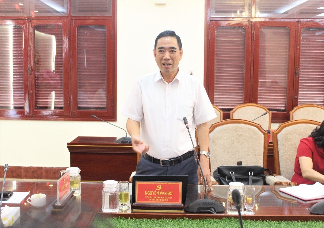 Đồng chí Hoàng Bá Nam, Tỉnh ủy viên, Bí thư Thành ủy; Đồng chí Nguyễn Văn Đô, Phó Bí thư Thường trực Thành ủy, Chủ tịch HĐND Thành phố; Đồng chí Nguyễn Thu Hương, Phó Chủ tịch UBND Thành phố cùng tiếp và làm việc với Đoàn.
