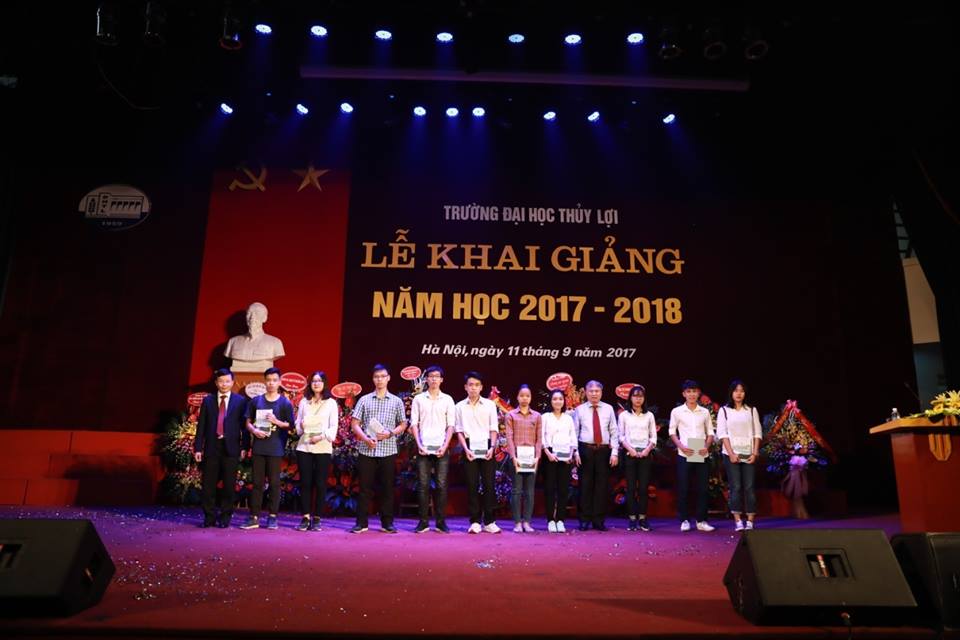 Sáng ngày 11/09/2017, tại Hội trường T45, Trường Đại học Thủy lợi long trọng tổ chức Lễ khai giảng năm học mới 2017 – 2018. Tới dự và chúc mừng thầy trò Nhà trường có Ông Ngô Hồng Giang – Phó Vụ trưởng Vụ Tổ chức cán bộ, Bộ Nông nghiệp- Phát triển nông thôn; Ông Dương Văn Bá – Phó Vụ trưởng Vụ Công tác học sinh, sinh viên, Bộ Giáo dục – Đào tạo; Bà Nguyễn Tố Quyên – Phó bí thư Đảng ủy khối các trường Đại học, Cao đẳng Hà Nội; các cán bộ Đại sứ quán đến từ các nước Lào, Campuchia và đại biểu chính quyền địa phương.