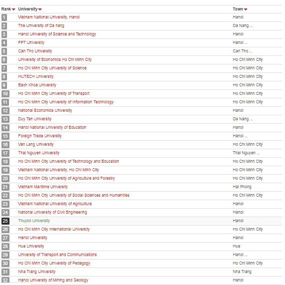 Trong danh sách các trường được xếp hạng, Trường Đại học Thủy lợi lọt thứ hạng 25 theo công bố của uniRank ™.