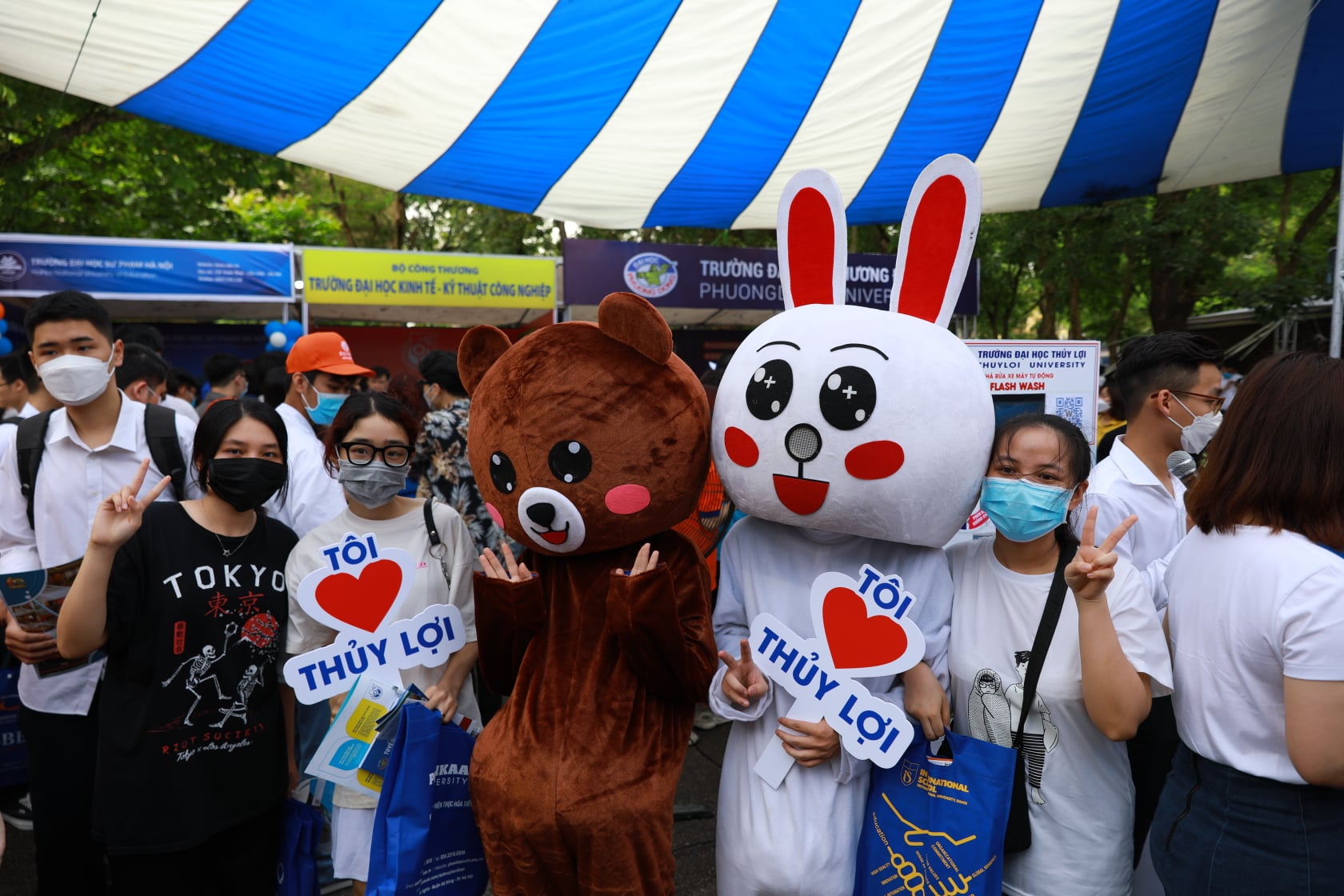 Tại gian của Trường Đại học Thủy lợi được các em học sinh chú ý nhiều nhất với những sản phẩm như: mô hình máy bay tự chế, robot trợ lý ảo, nhà rửa xe tự động, máy in 3D… Các sản phẩm này do chính sinh viên và giảng viên của trường thiết kế, điều hành. Và cũng tại đây đã tạo ra một khung cảnh náo nhiệt với những hoạt động phong phú như tư vấn trực tiếp từ các thầy cô giáo các ngành học, chụp ảnh cùng các nhân vật bằng bông, hỏi đáp về các sản phẩm công nghệ do thầy và trò Nhà trường tự nghiên cứu và chế tạo, tham gia vào các tiết mục biểu diễn nhảy hiện đại đầy sôi động.