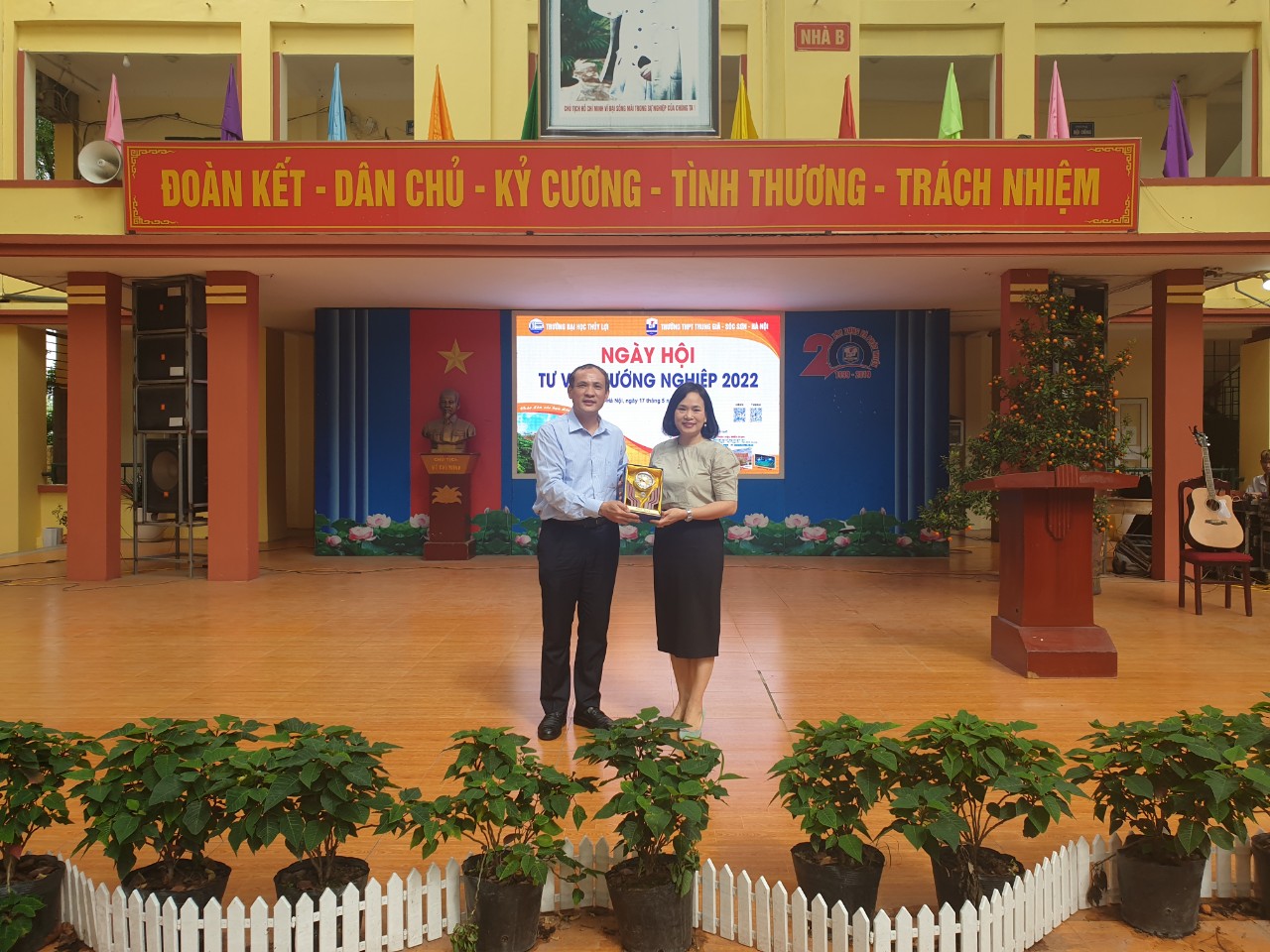 Nhà trường tặng quà lưu niệm cho đại diện Trường THPT Trung Giã, cô Nguyễn Thị Tươi – Hiệu trưởng