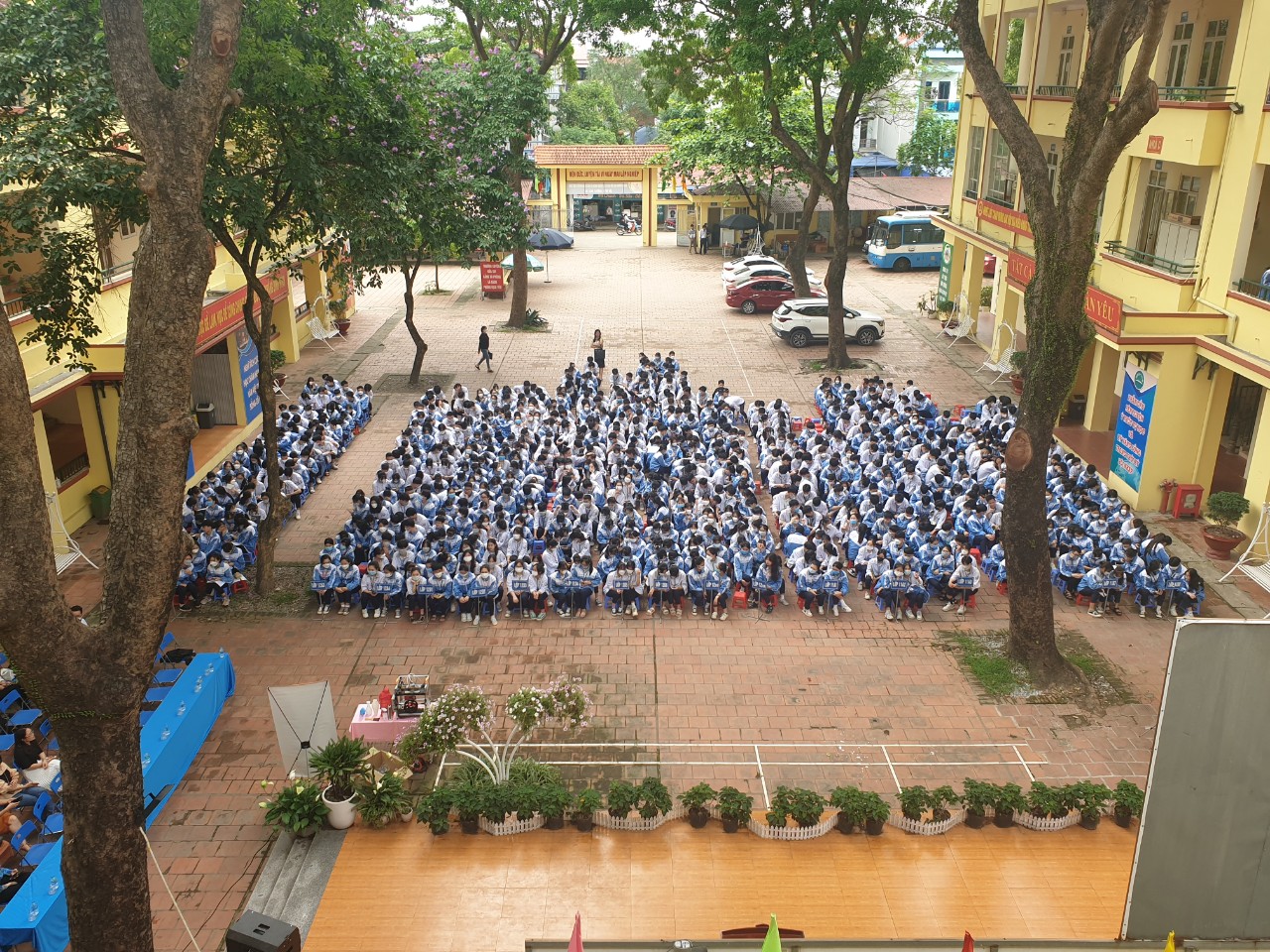 Các em học sinh THPT Trung Giã lắng nghe chia sẻ từ thầy cô trường Đại học Thủy lợi