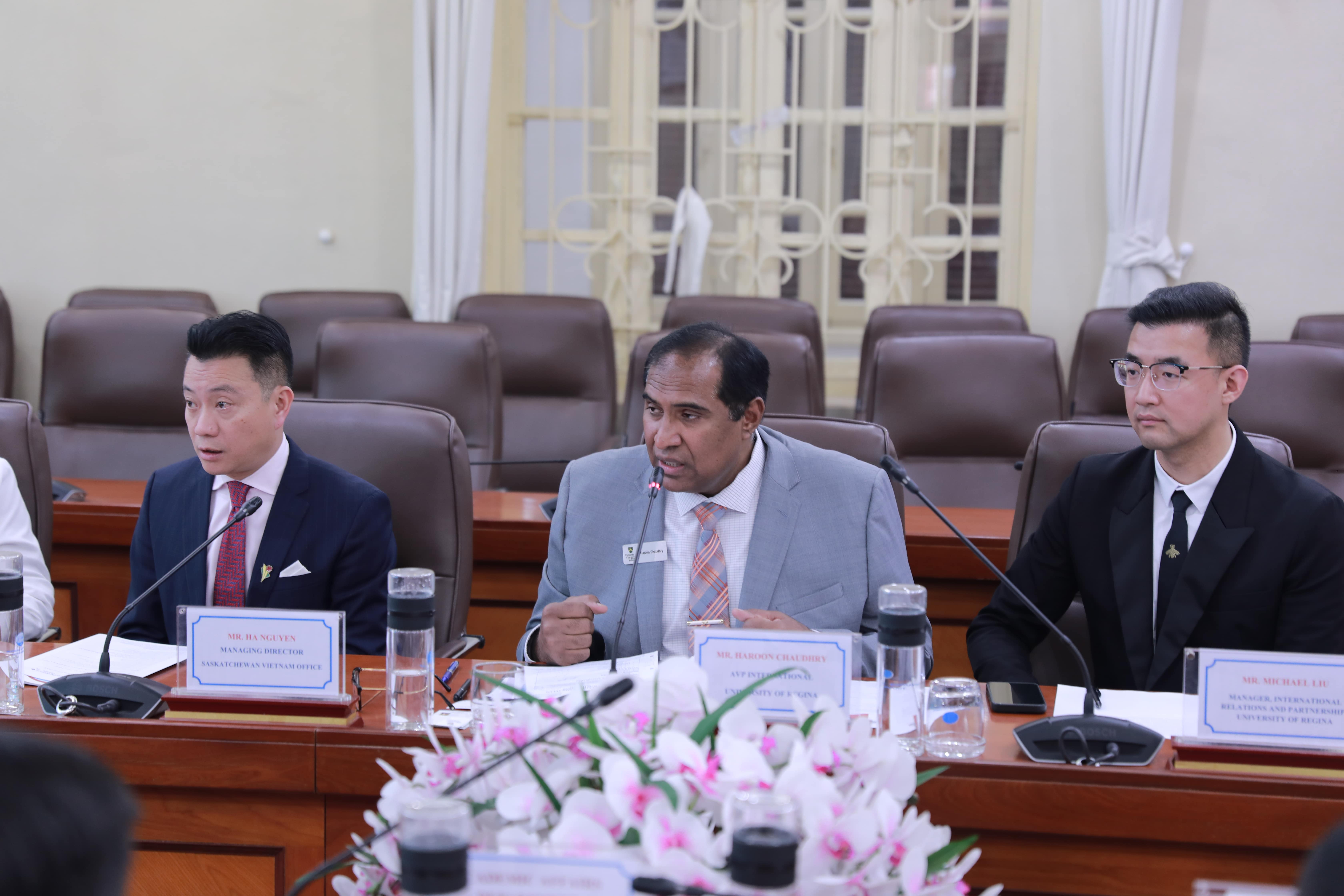 Phó Hiệu trưởng Haroon Chaudhry, đại diện cho phía ĐH Regina, đã có bài trình bày chi tiết về các chương trình học tập và nghiên cứu của trường, mở ra cơ hội thảo luận về các hướng hợp tác cụ thể giữa hai bên. Ông Haroon bày tỏ mong muốn hợp tác với ĐHTL về đào tạo và các nghiên cứu chung, tăng cường trao đổi sinh viên thông qua các chương trình như 2+2, 3+1, v.v.