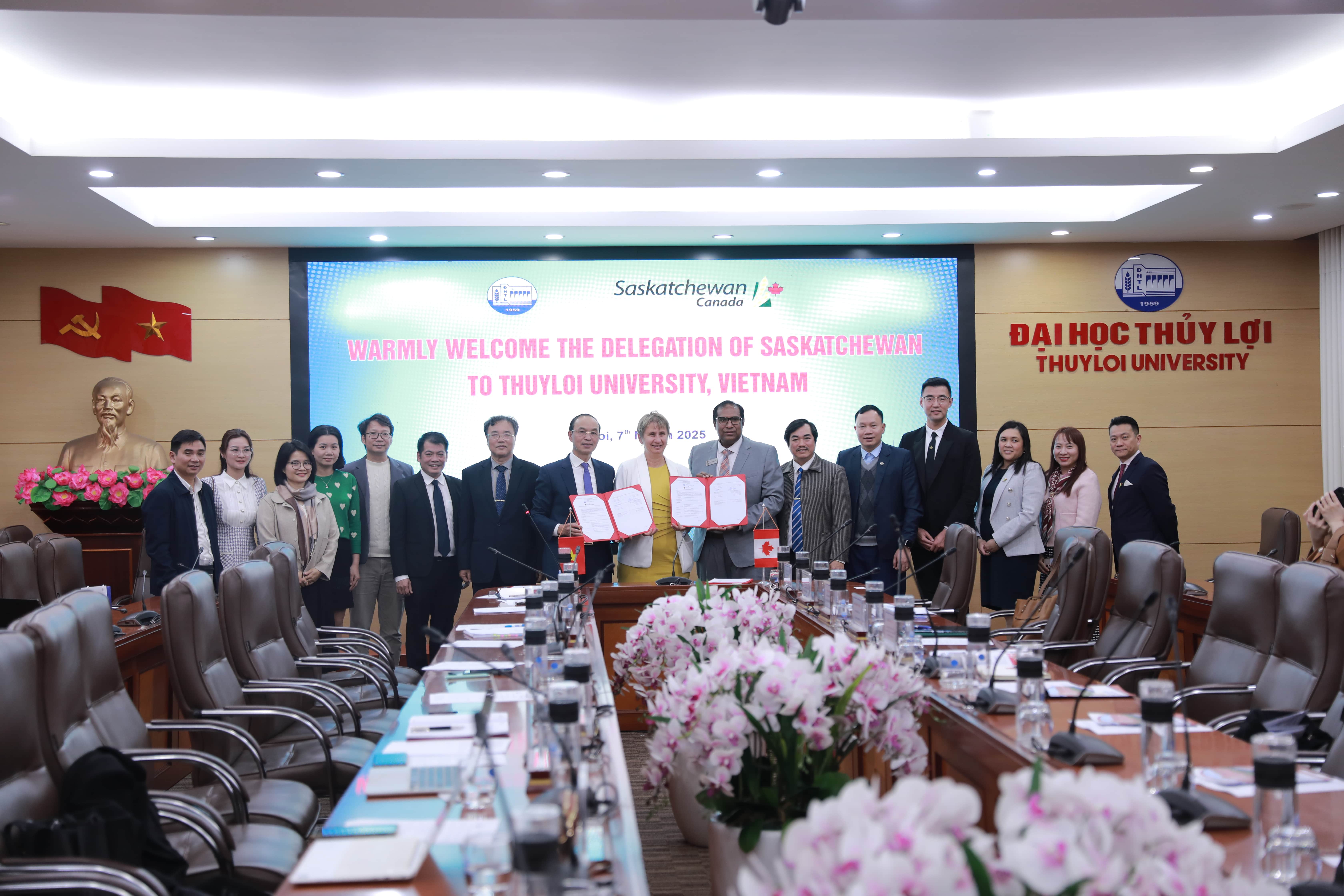 Chủ trì buổi họp, GS.TS Trịnh Minh Thụ, Hiệu trưởng Trường Đại học Thủy lợi, đã gửi lời chào tới phái đoàn và có bài phát biểu giới thiệu về quy mô nhà trường, các chương trình đào tạo và nghiên cứu hiện tại. Hiệu trưởng bày tỏ mong muốn nhà trường sẽ có nhiều hợp tác mới trong giáo dục và đào tạo với Canada, trong đó là việc ký kết biên bản ghi nhớ với ĐH Regina trong chuyến thăm lần này của đoàn.