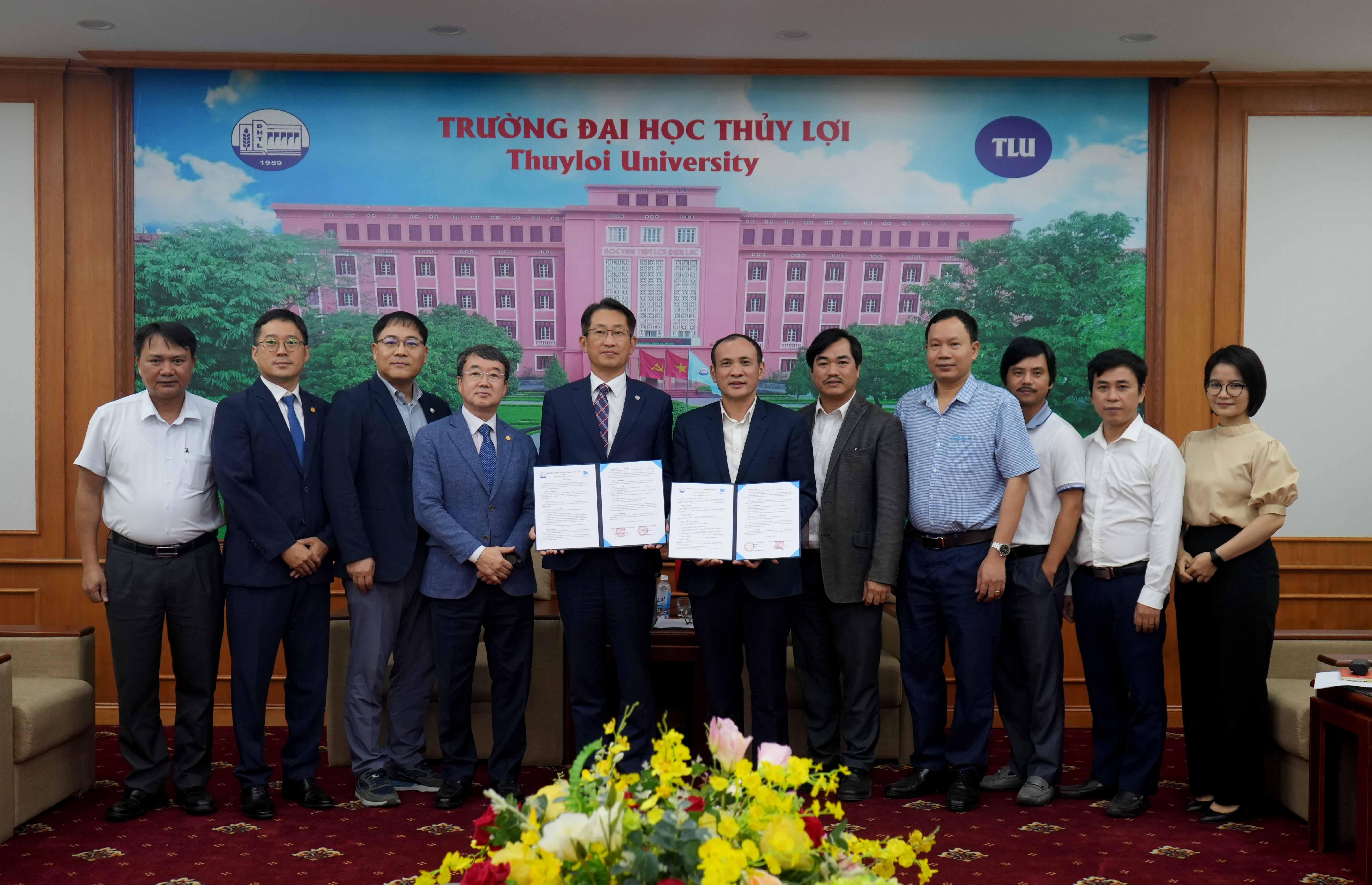 Trong buổi làm việc, đại diện lãnh đạo hai bên đã bàn về hướng triển khai các nội dung hợp tác có trong MoU đã ký vào giữa tháng 9/2023. Đề xuất chi tiết để MoU đạt được mục tiêu đã đề ra cho đào tạo nguồn nhân lực. Cụ thể bao gồm: Chương trình trao đổi sinh viên, giảng viên giữa 2 trường (Internship Program); Trao đổi những ấn phẩm học thuật, tài liệu nghiên cứu và những thông tin khác; Thiết lập và triển khai chương trình 2+2 đối với chương trình cử nhân và kỹ sư; Tạo điều kiện hợp tác học thuật và giáo dục, trao đổi chương trình giảng dạy; Huy động sự hợp tác đào tạo kỹ năng nghề cho sinh viên Trường Đại học Thủy lợi; Hợp tác tổ chức hội thảo chuyên đề quốc tế; xây dựng dự án nghiên cứu khoa học và chuyển giao nghiên cứu ứng dụng chung. Ngoài ra còn hỗ trợ triển khai chương trình giảng dạy tiếng Hàn Quốc, trong thời gian tới có thể cử giảng viên sang giảng dạy tiếng cho các cử nhân/ kỹ sư tham gia du học Hàn Quốc theo chương trình 2+2, trao tặng những ấn phẩm tiếng Hàn để sinh viên có thêm tài liệu học tập.