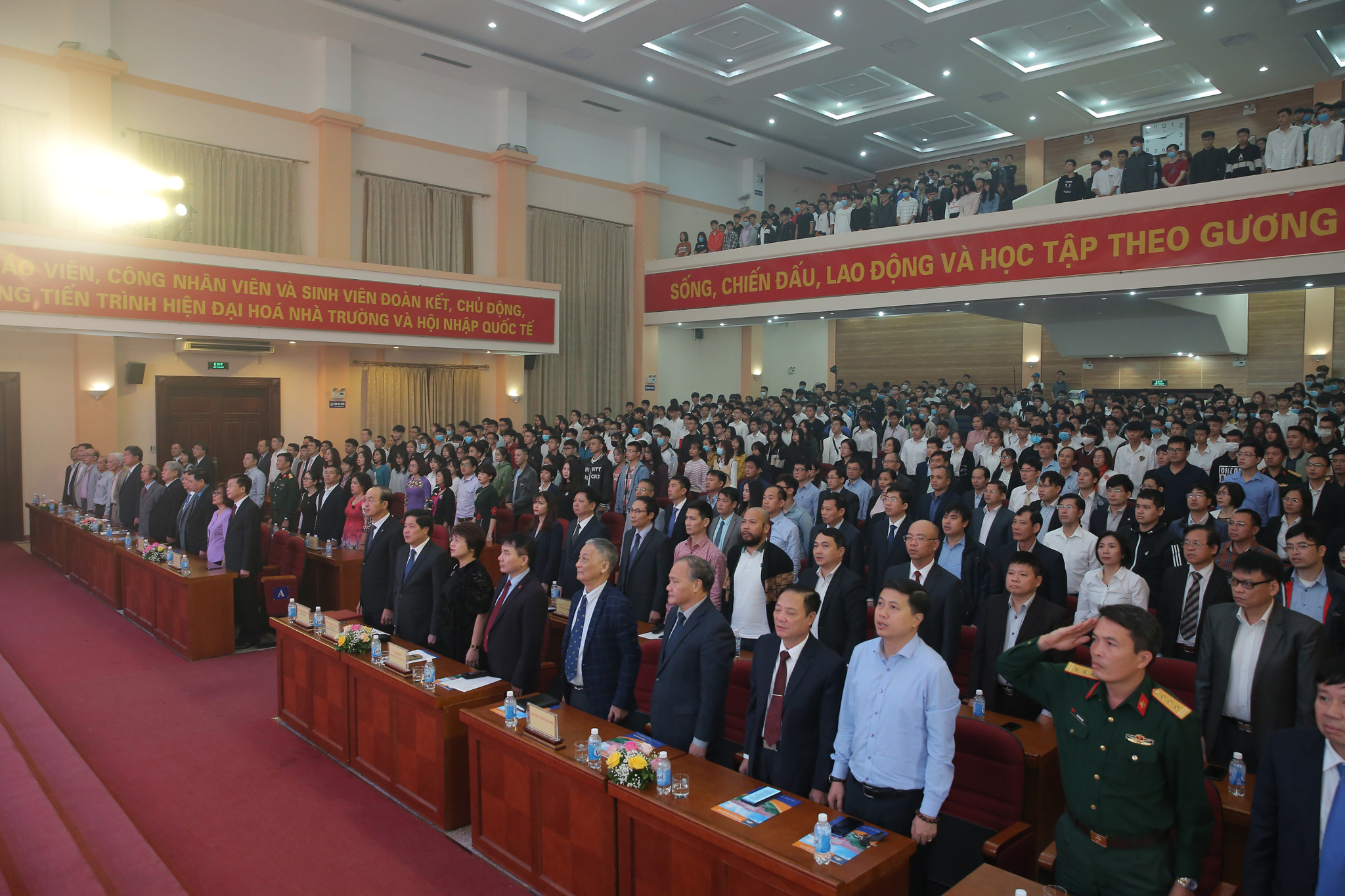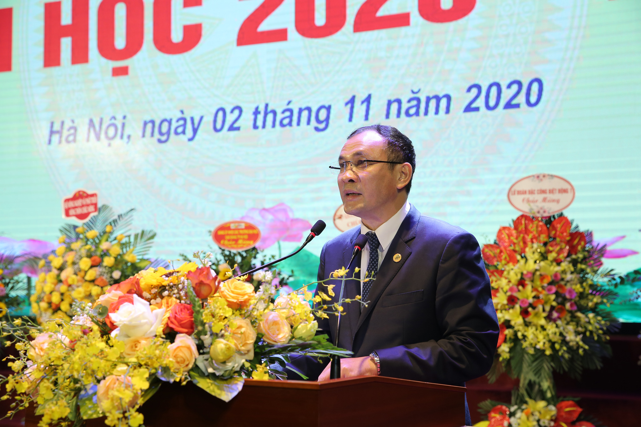 Thay mặt Đảng ủy, Ban giám hiệu và Hội đồng trường, GS.TS Trịnh Minh Thụ đã đánh hồi trống Khai trường, chính thức tuyên bố Khai giảng năm học mới 2020-2021.